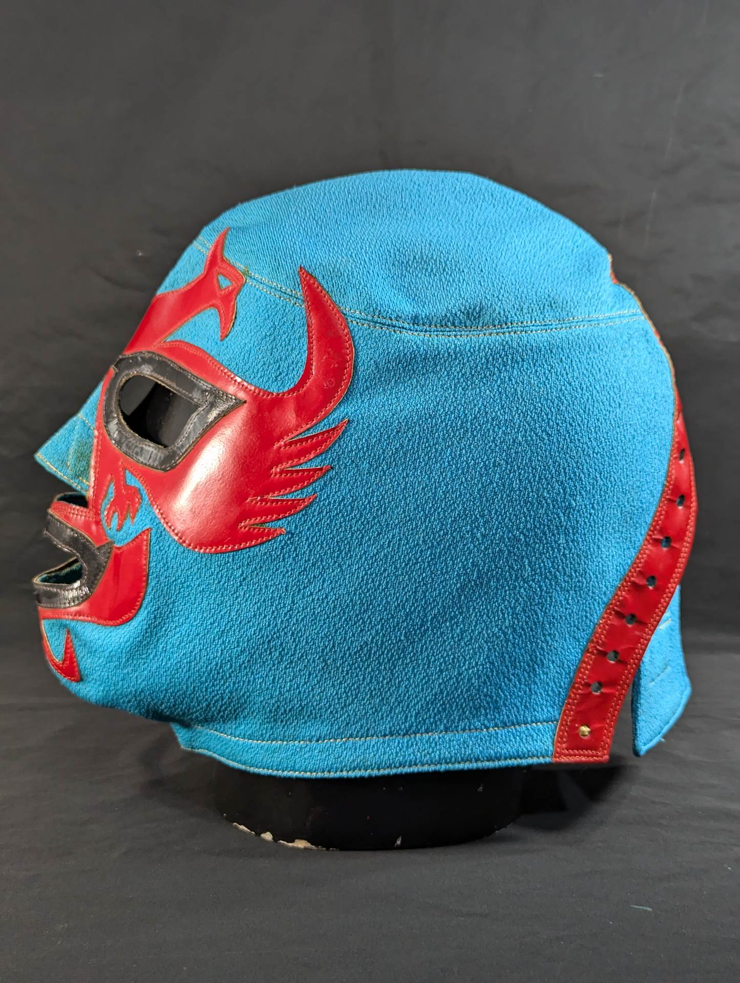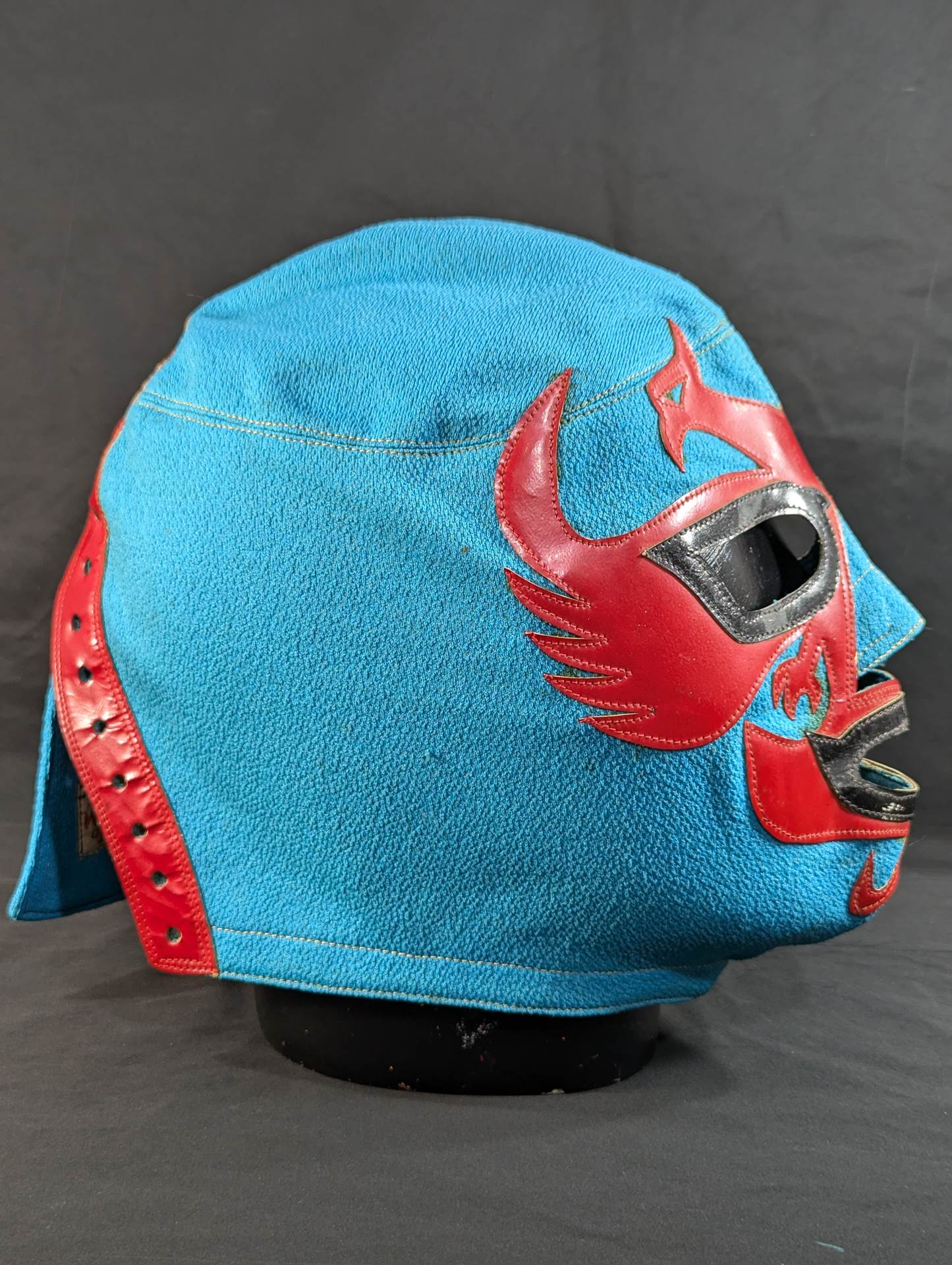 ★80年代当時モノ★ 水色テルレンカジャージ生地 黒革フチ&赤革フチ ベロは同素材 喉テープは縦幅1.7cmで薄茶色のセンターステッチ 裏当てなし 紐穴は片側13個 1980年代中頃に製作されたもの