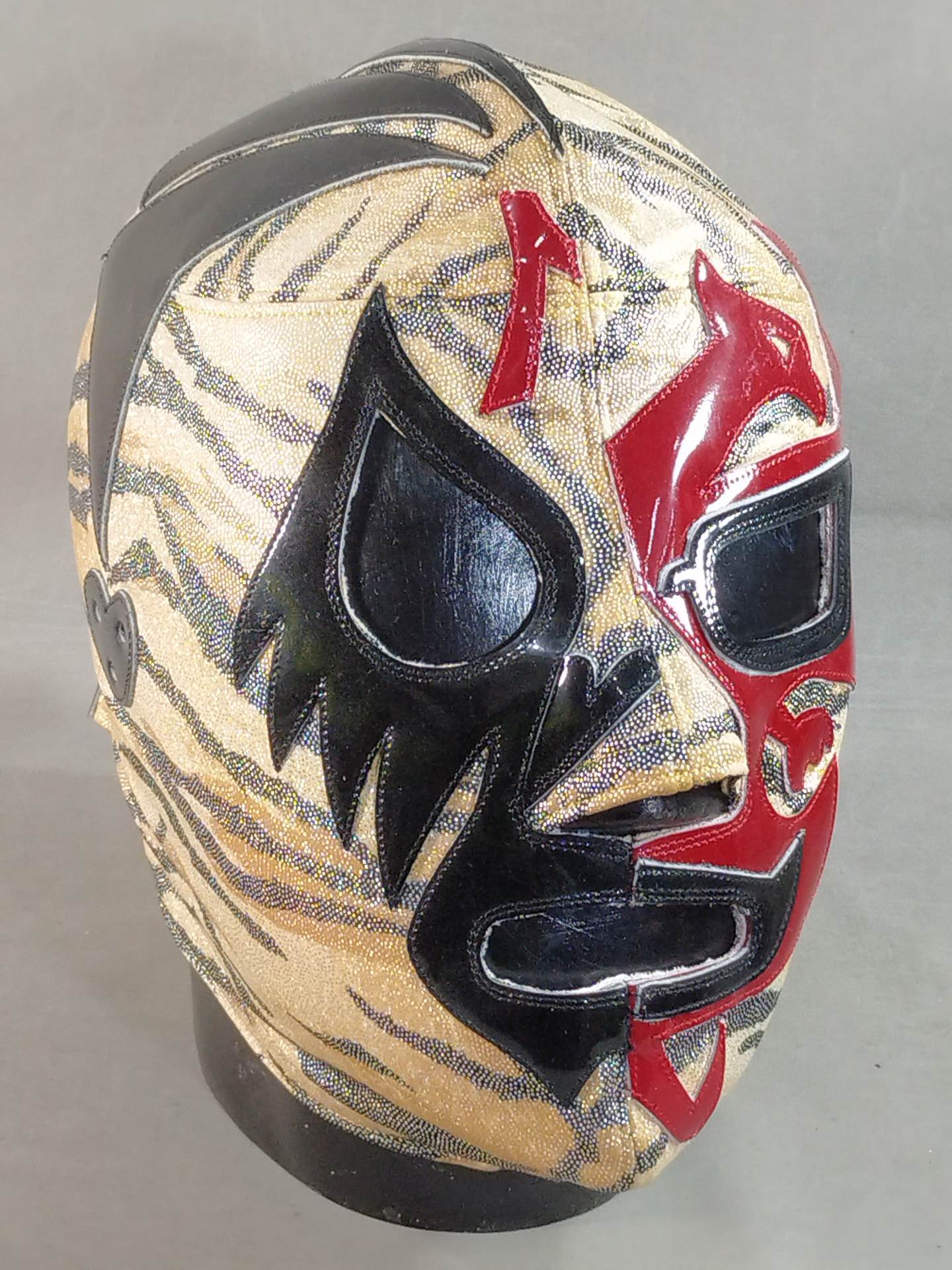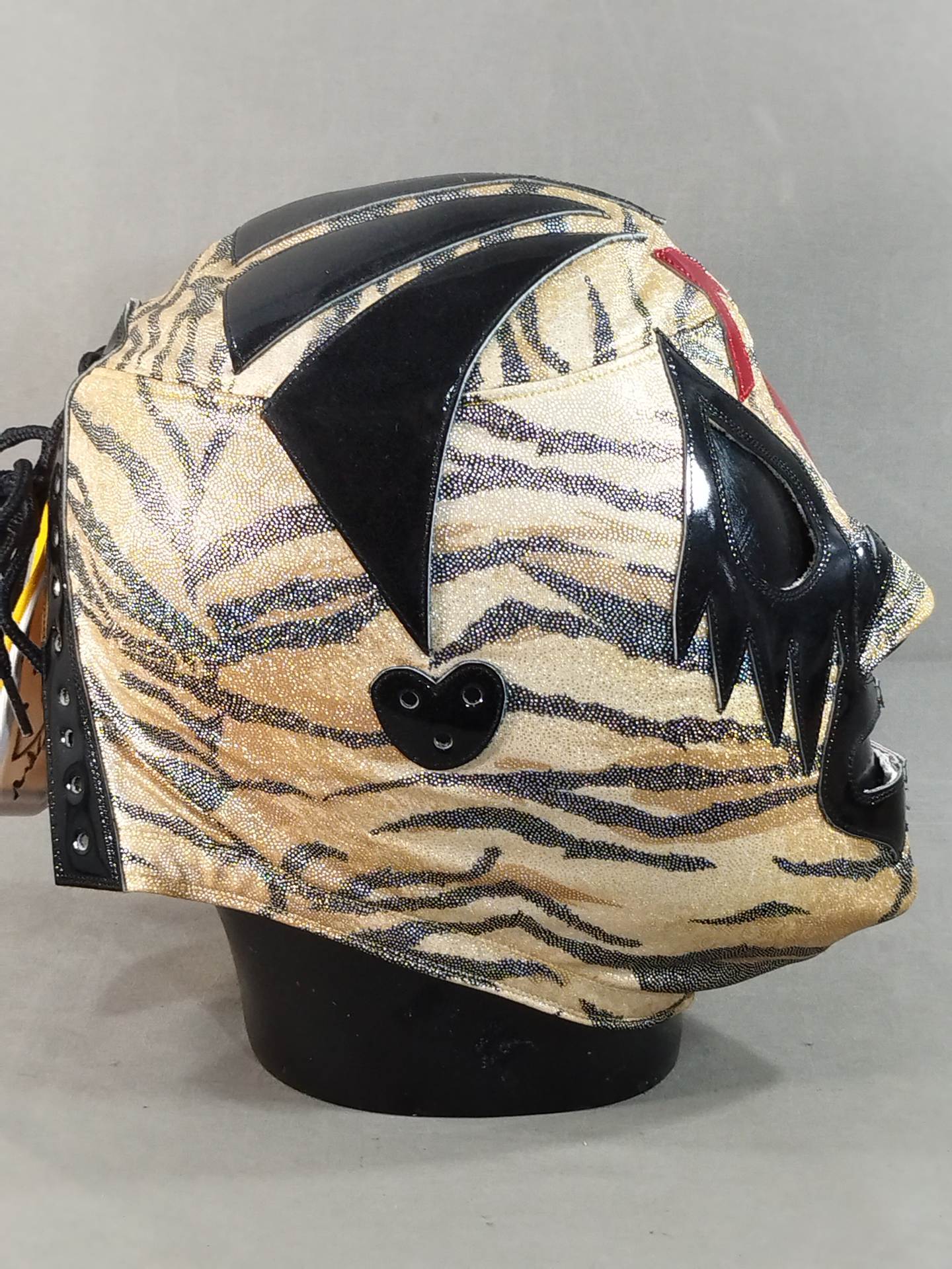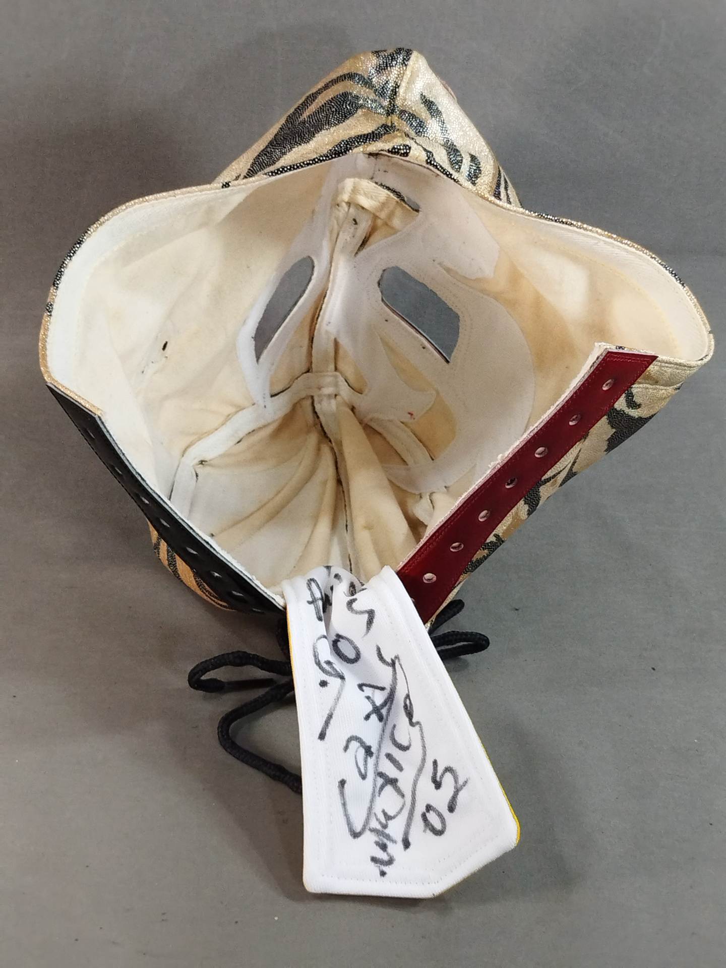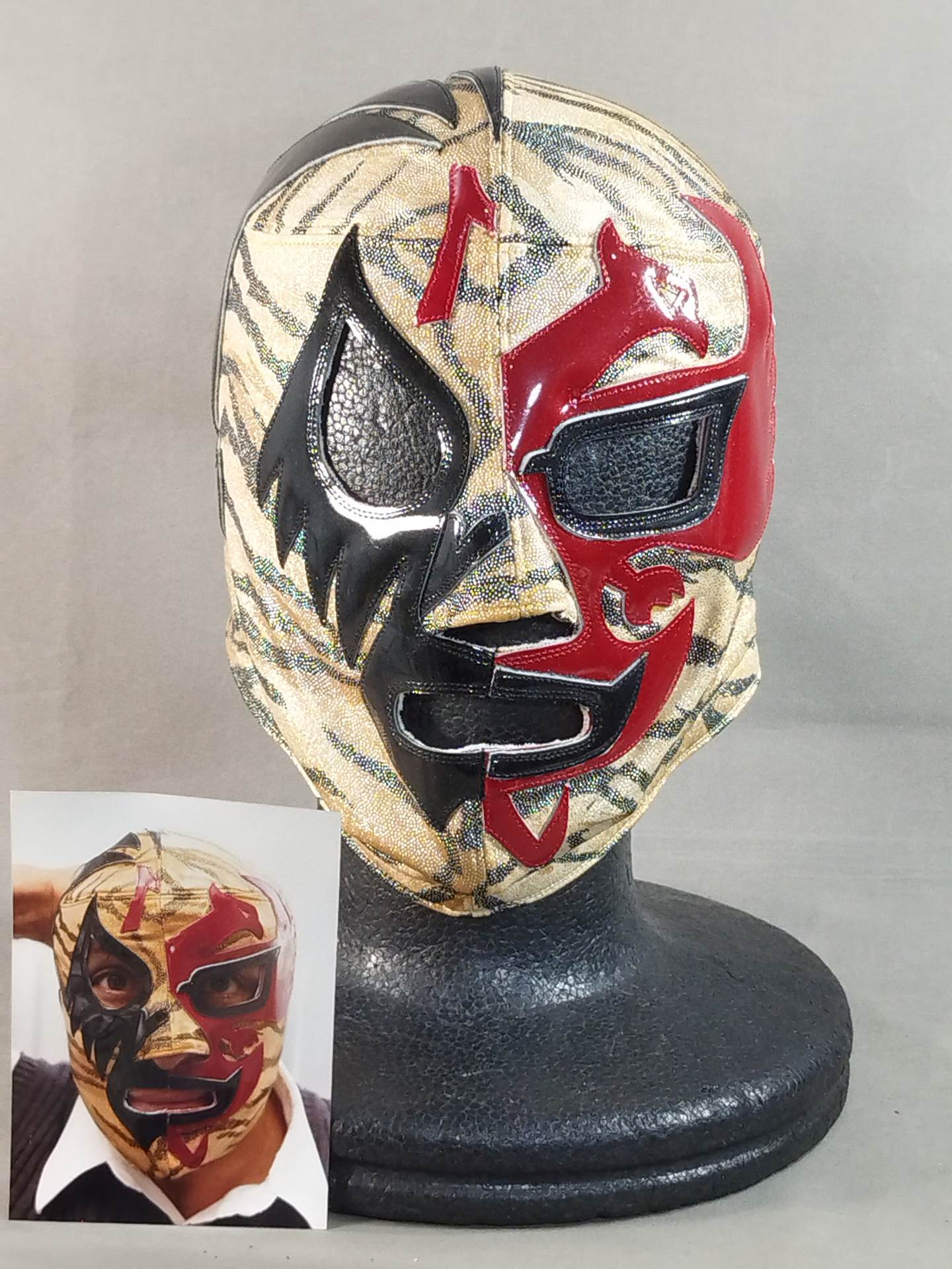 ★ミル・マスカラスとのハーフタイプ★ サイン入り(02) 着用写真付 虎柄特殊レオタード2重生地 濃赤革フチ&黒革フチ