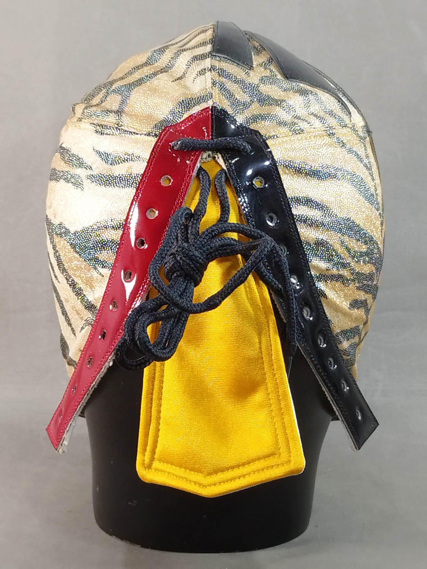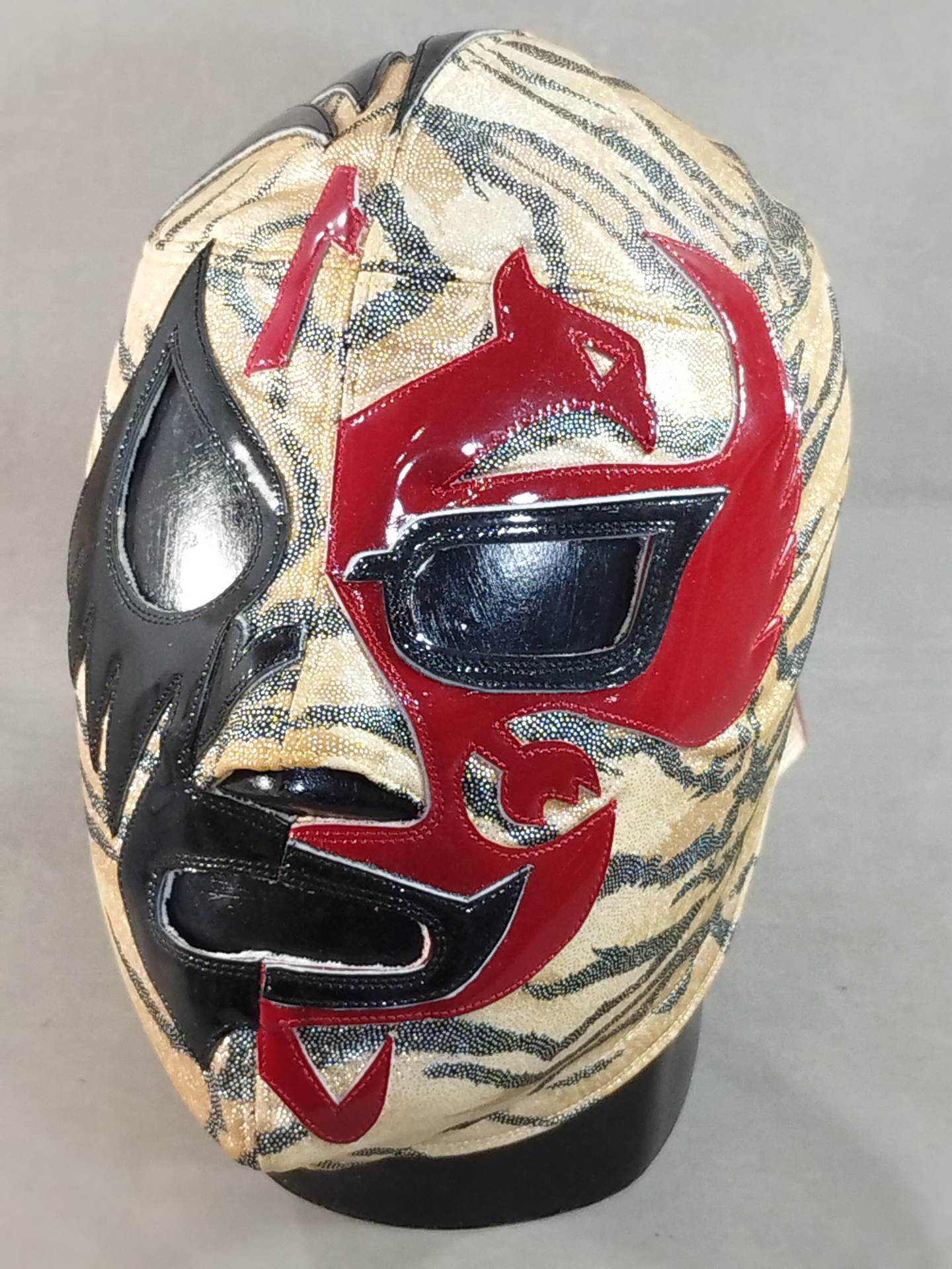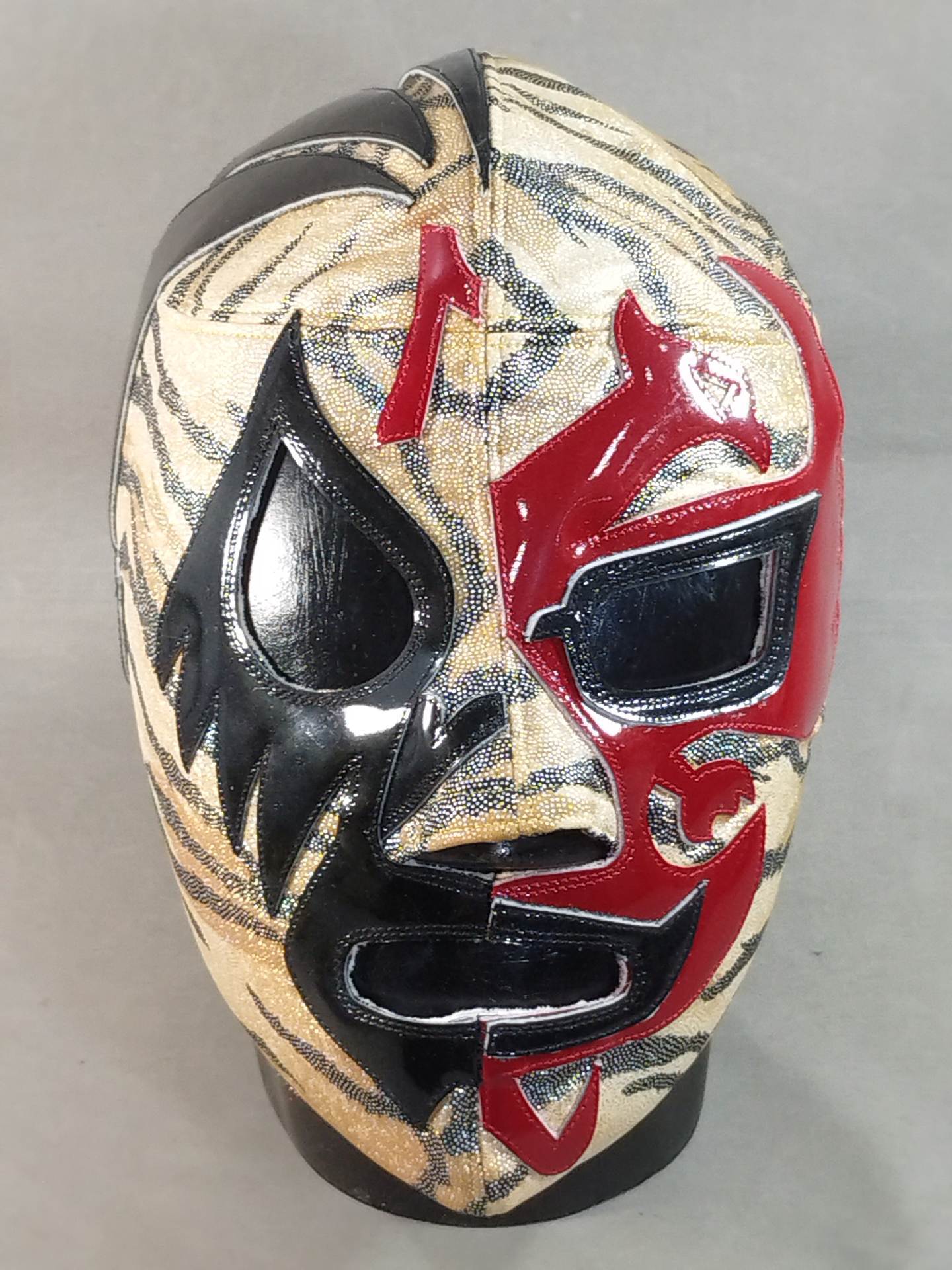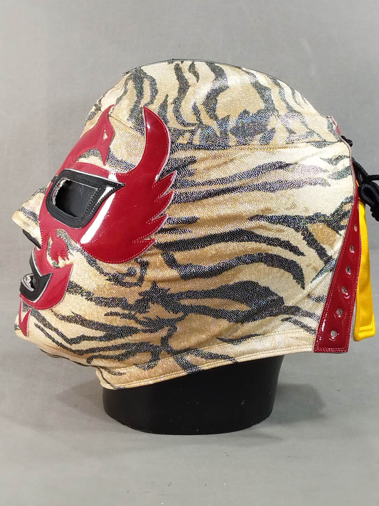 ★ミル・マスカラスとのハーフタイプ★ サイン入り(02) 着用写真付 虎柄特殊レオタード2重生地 濃赤革フチ&黒革フチ