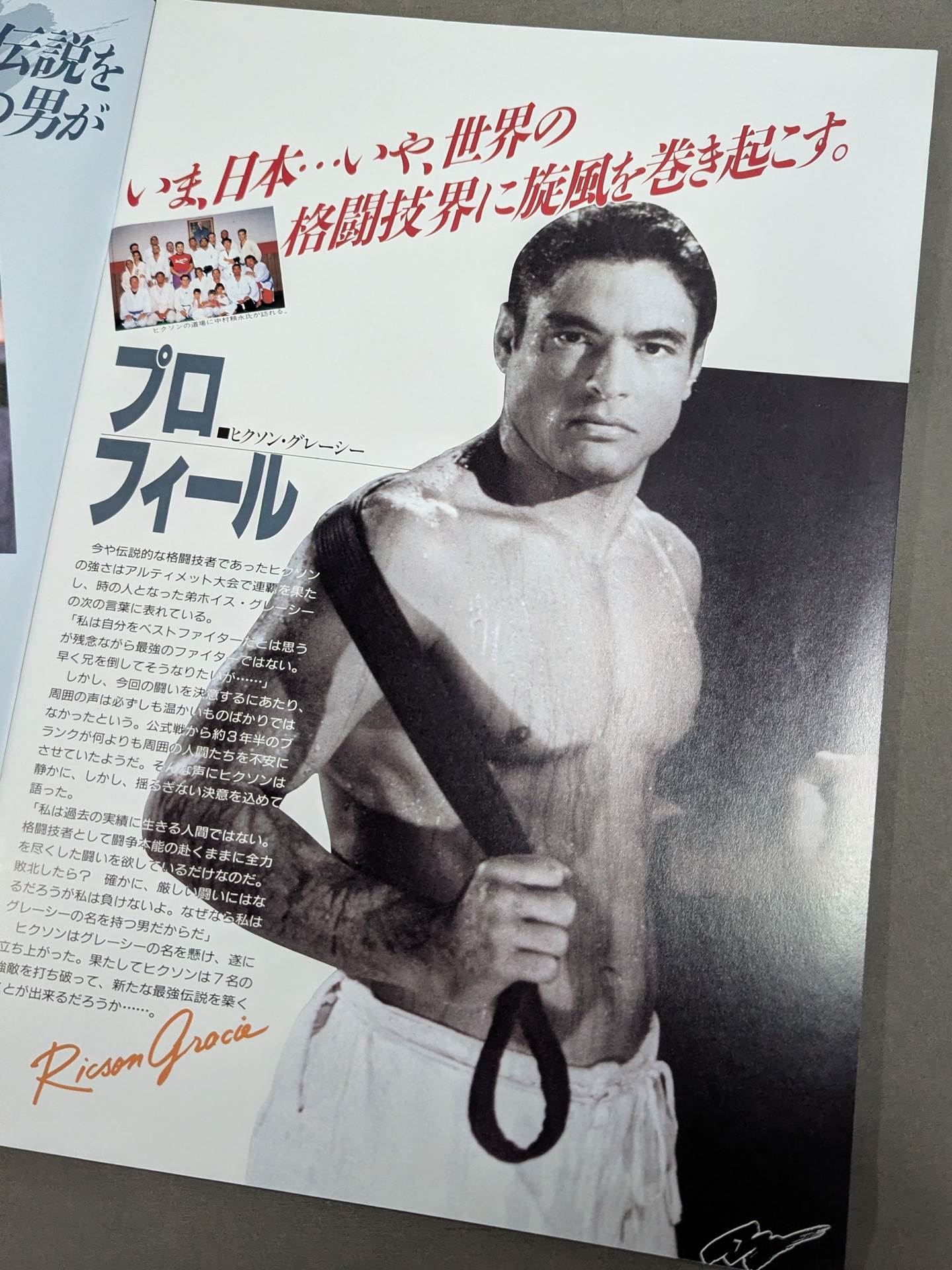 会場:千葉・東京ベイNKホール / 印刷トーナメント表&別紙対戦表あり:【1回戦】西良典vsヒクソン・グレイシー /【決勝】表記なし(ヒクソン・グレイシーvsバド・スミス) / バーリ・トゥード・ジャパン・オープン 1994
