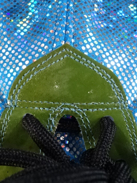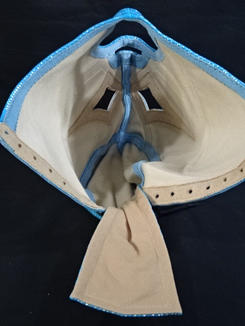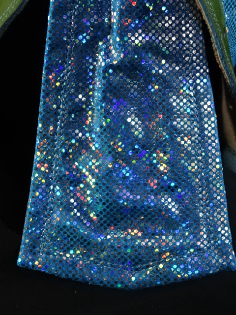 水色特殊レオタード2重生地 赤革フチ&黒革フチ