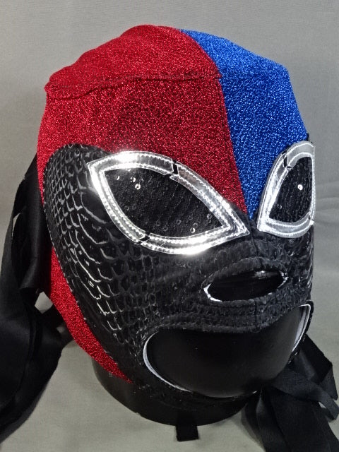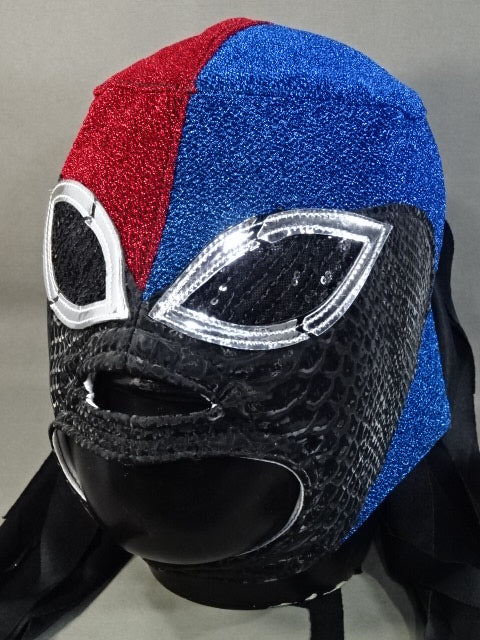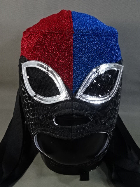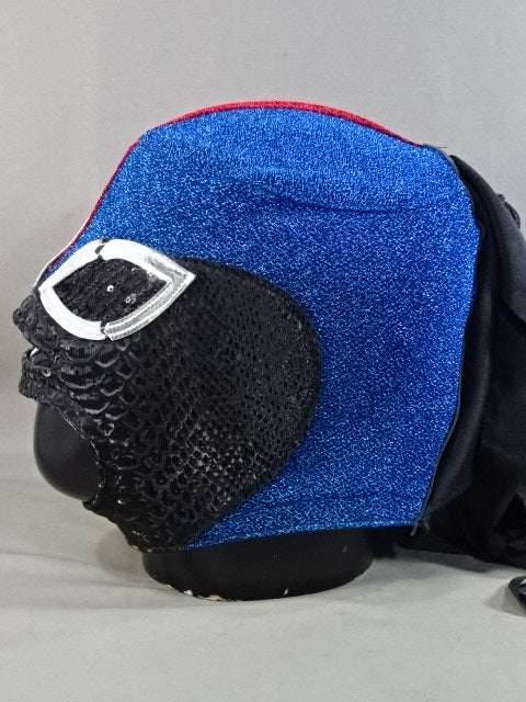 ★ハイグレードセミレプリカマスク★ 濃赤ブリオーサ&濃青ブリオーサ&黒特殊レオタード2重生地 銀特殊フチ