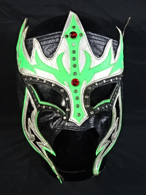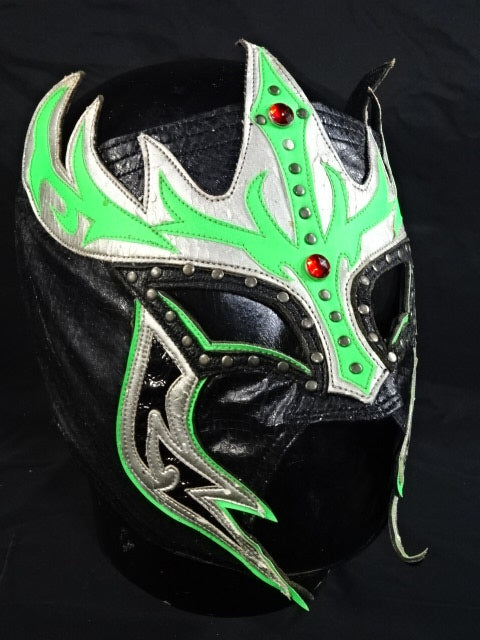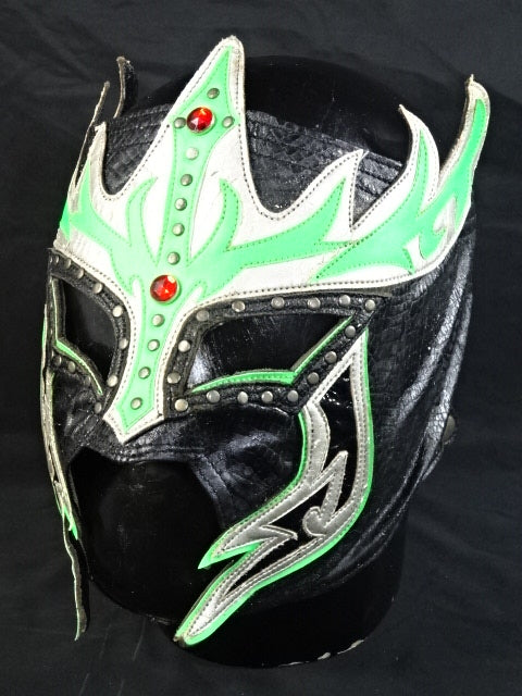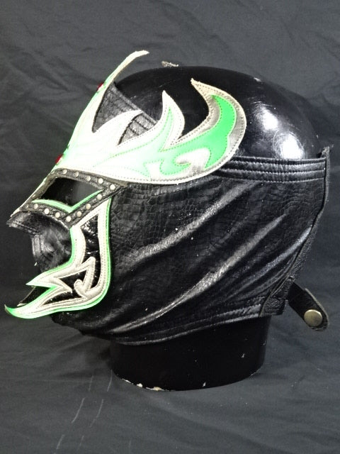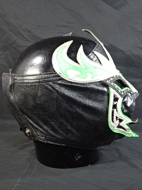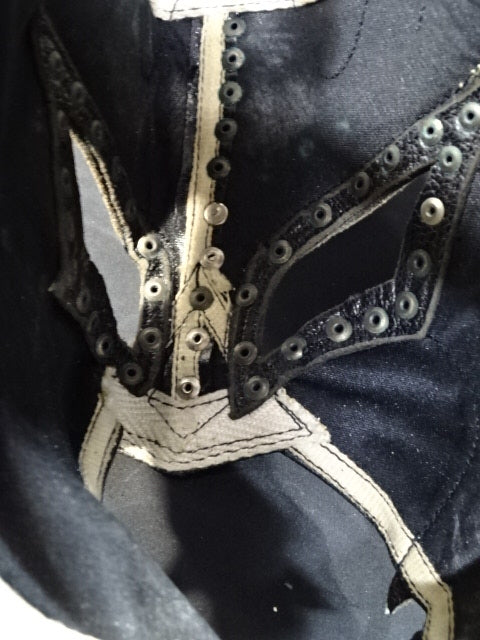 本人使用サイン入り 黒レオタード生地 黒革フチ&銀フチ&黄緑フチ