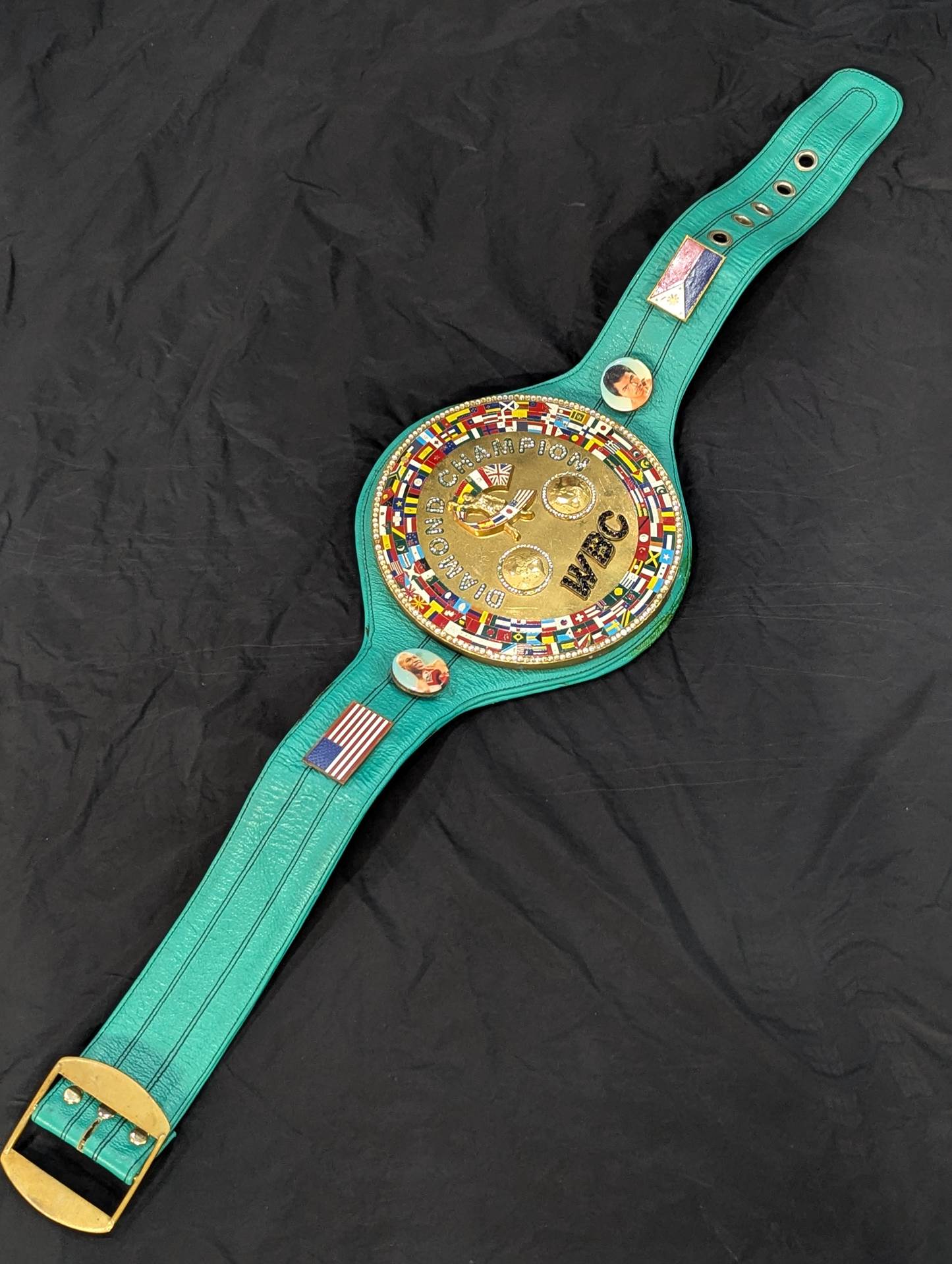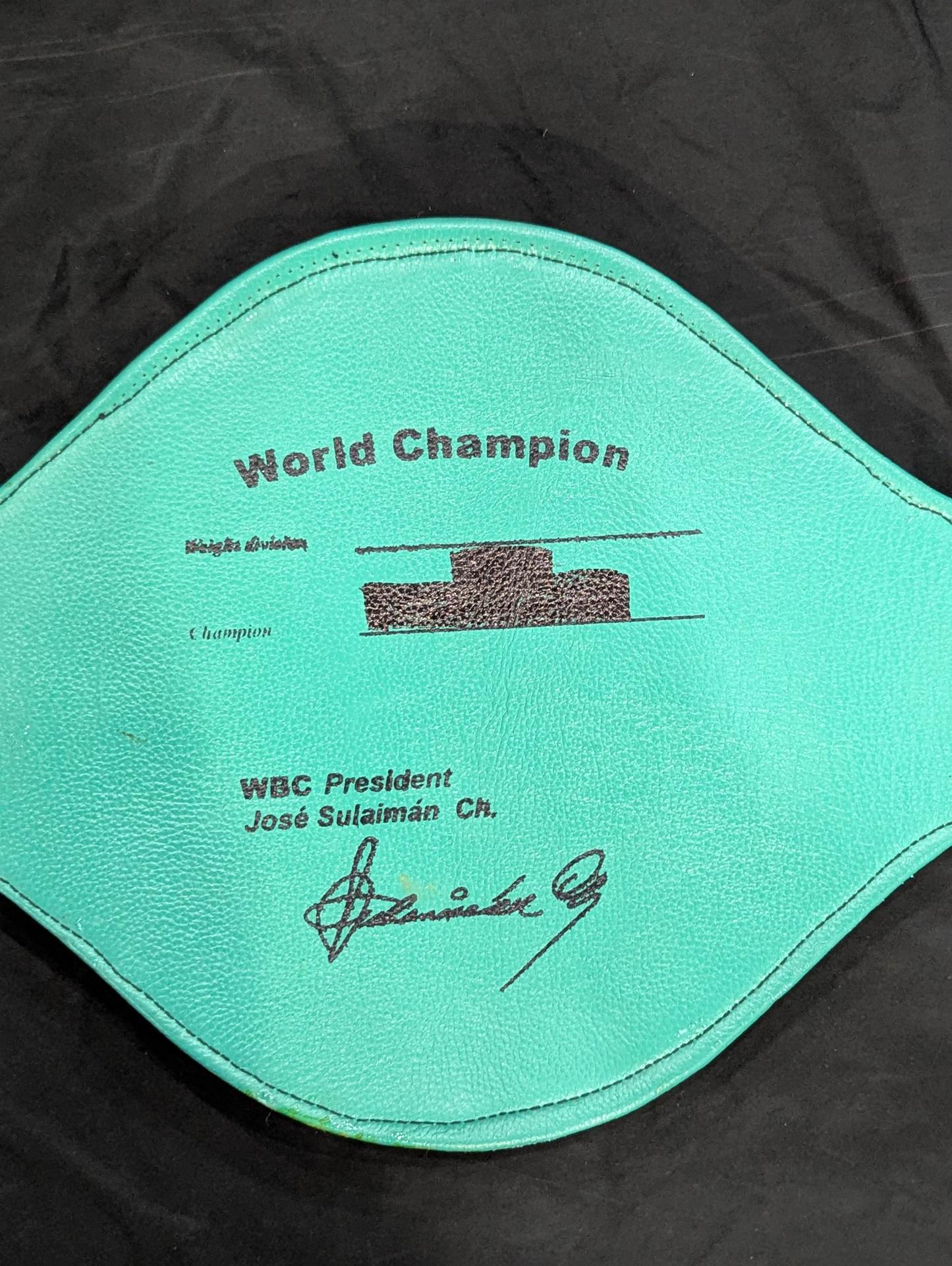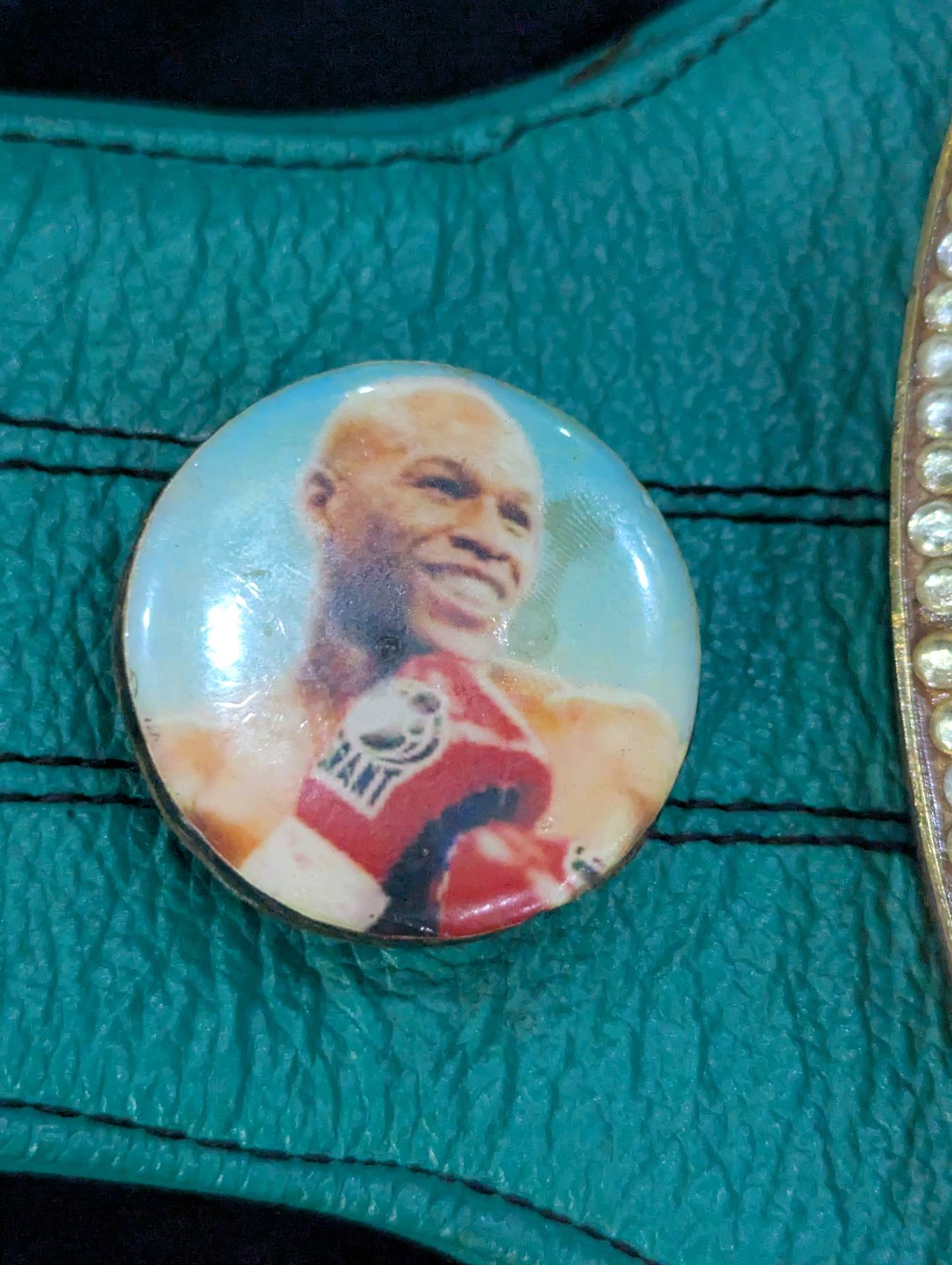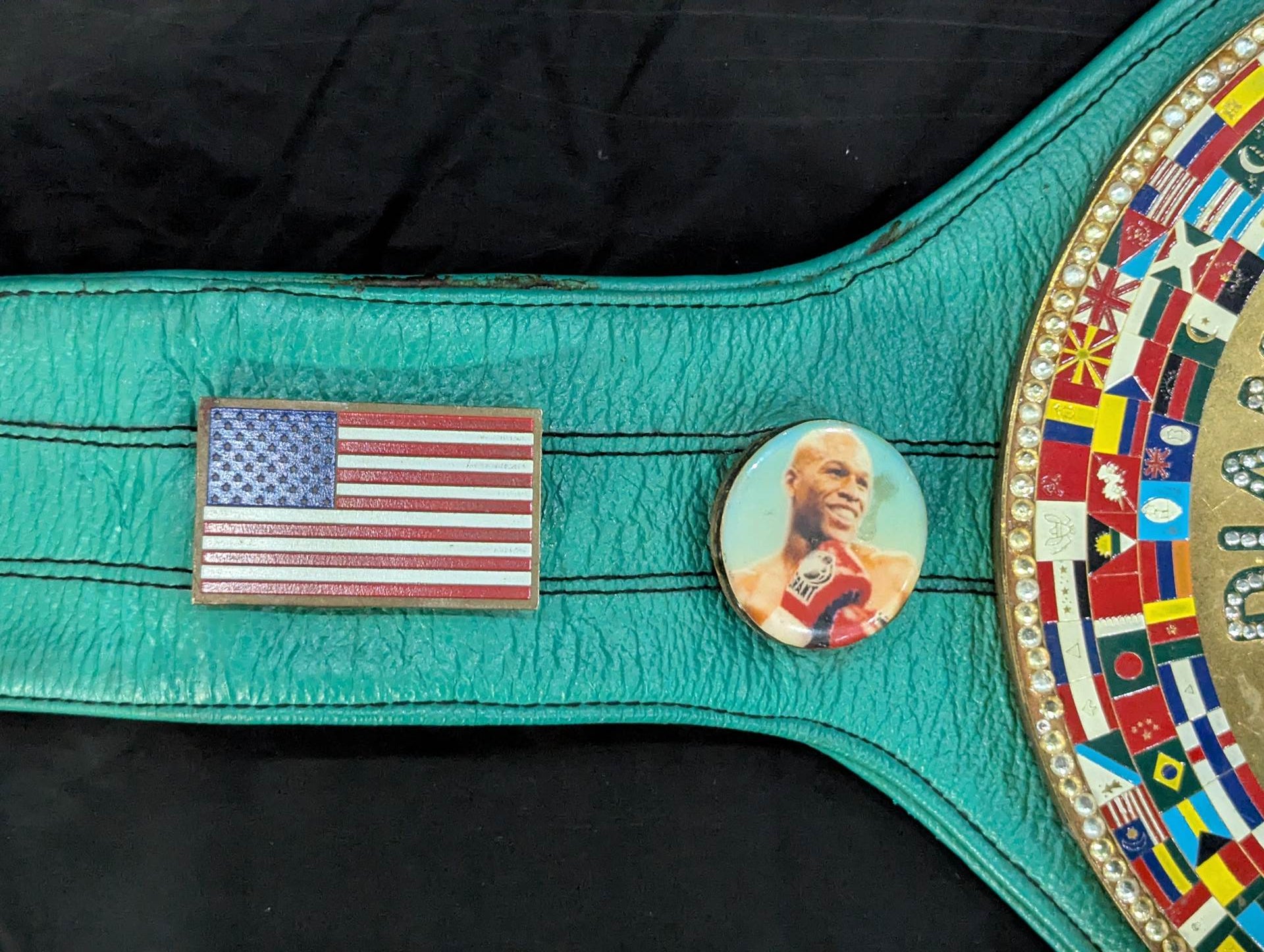 サイズ(121cm×28cm) プレート(1.5cmの2重構造) ストラップ素材(薄緑合皮) 重量(1.7kg) フロイド・メイウェザー・ジュニア、マニー・パッキャオのフォトプレート