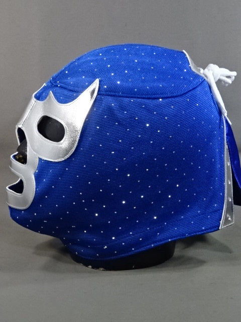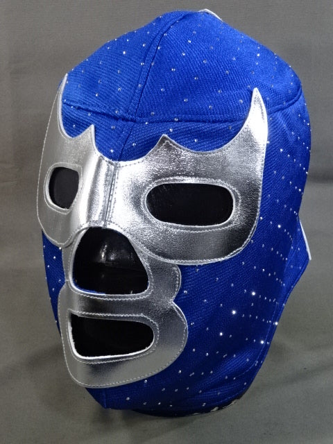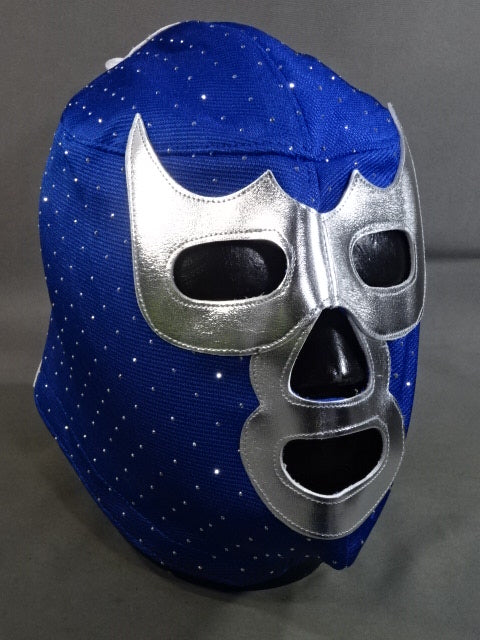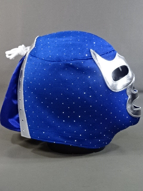 ★ハイグレードセミレプリカマスク★ 青ジャージ生地 銀フチ ラインストーン装飾あり