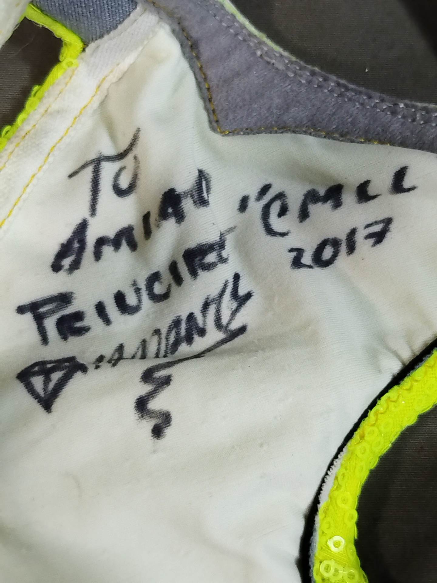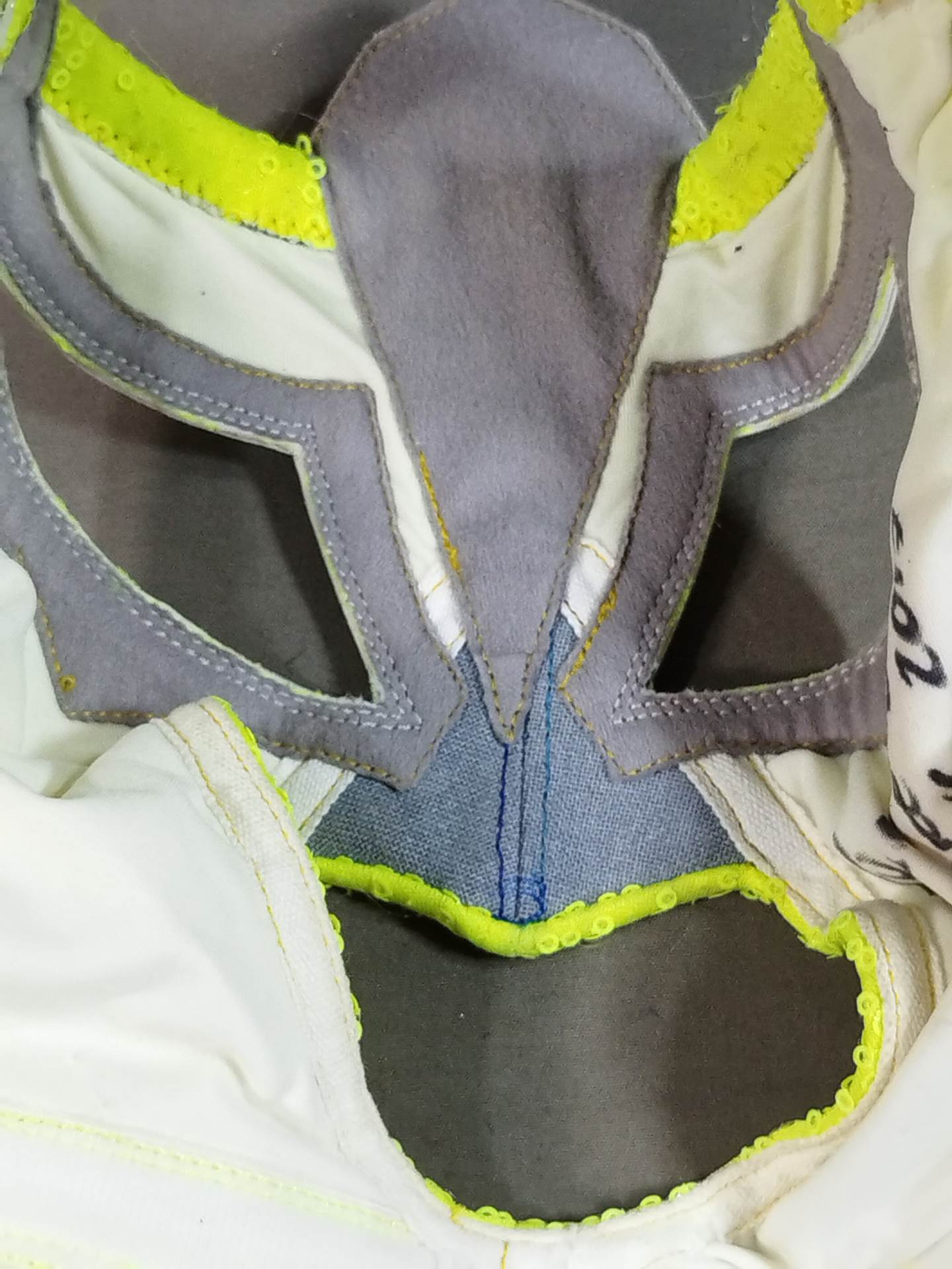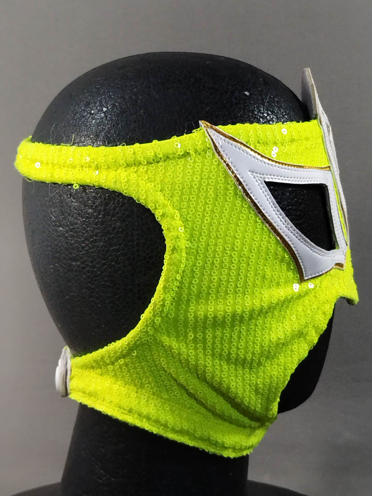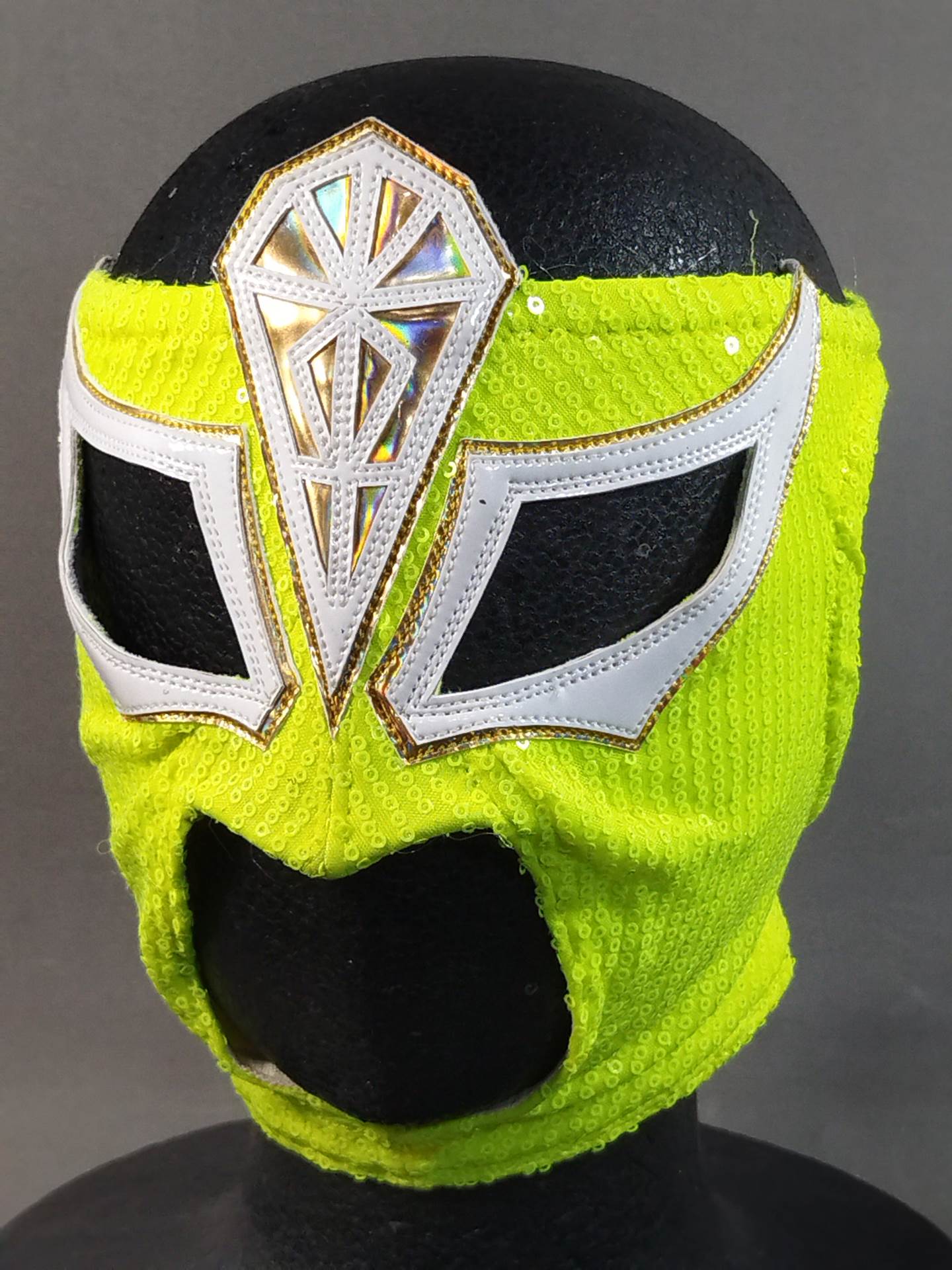 本人使用サイン入り(CMLL 2013) 蛍光黄色スパンコール装飾2重生地 金メタリック地白フチ
