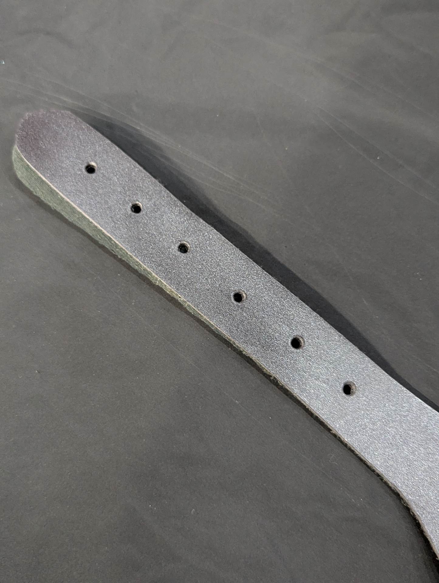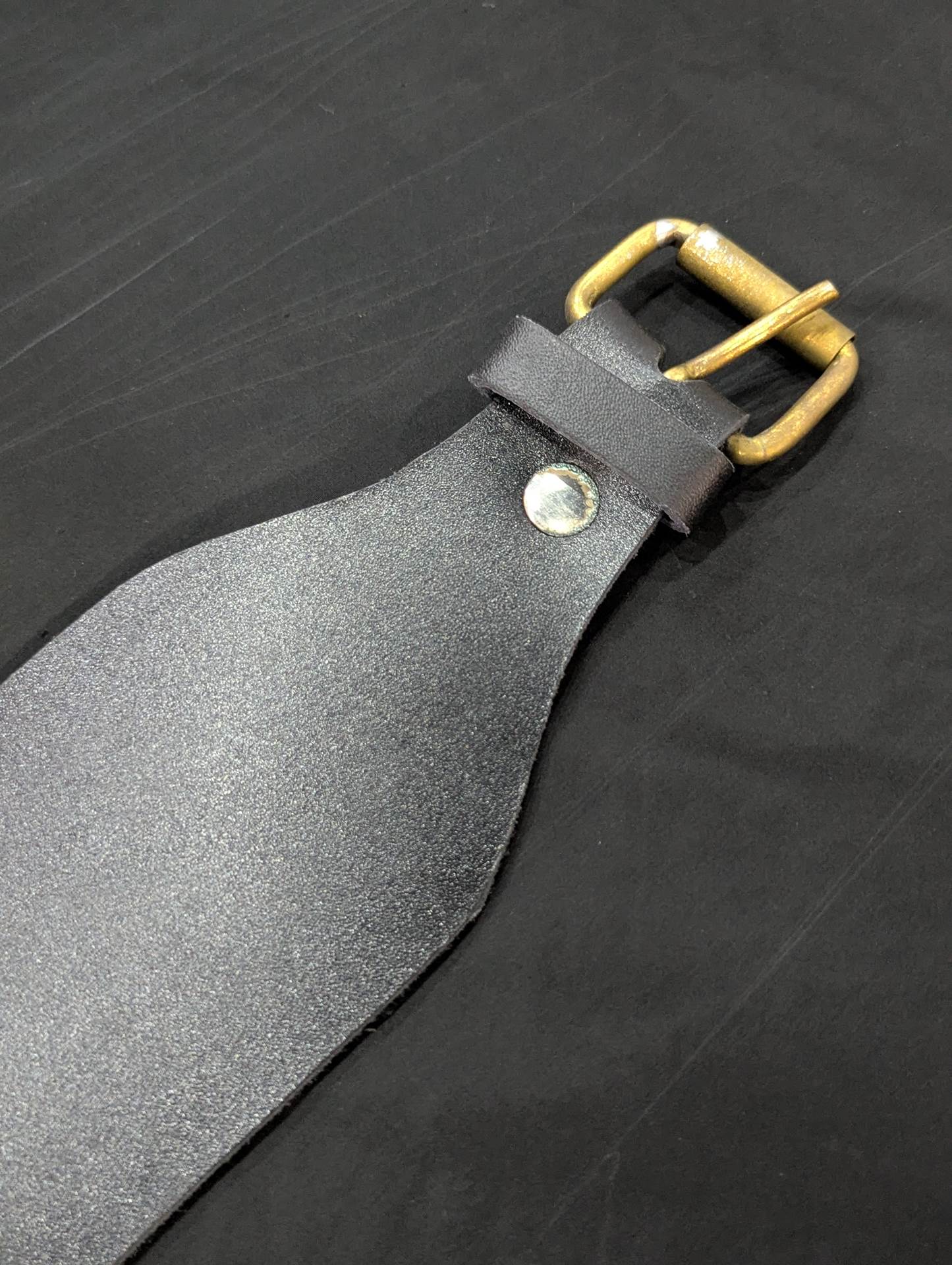 サイズ(133.5cm×22.5cm) プレート(亜鉛合金製・1mm) ストラップ素材(黒合皮) ネーム刻印(LOU THESZ) クリア、レッド、ブラックのカラーストーン装飾 重量(1kg)