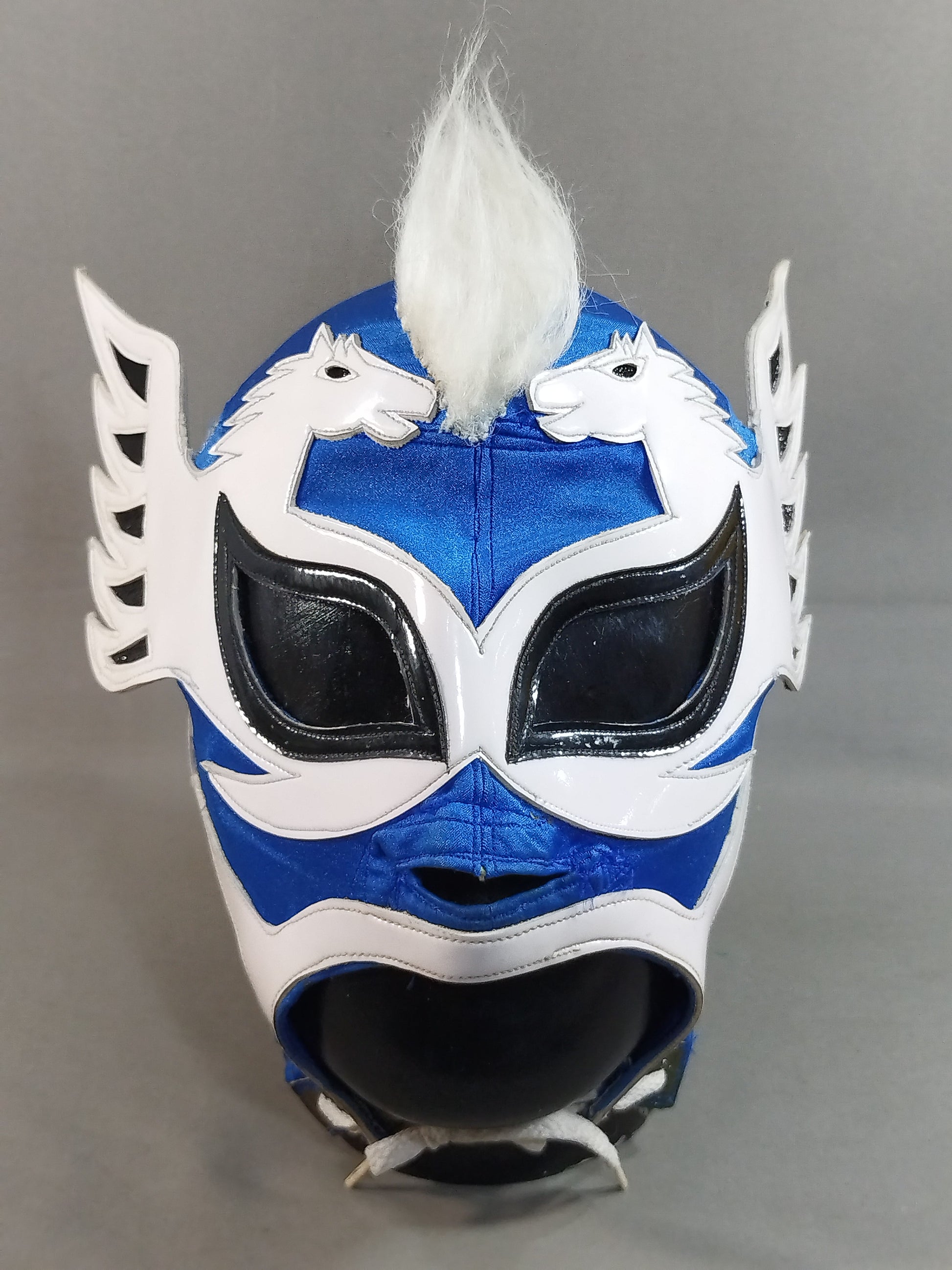 本人使用サイン入り 青レオタード生地 白地黒フチ