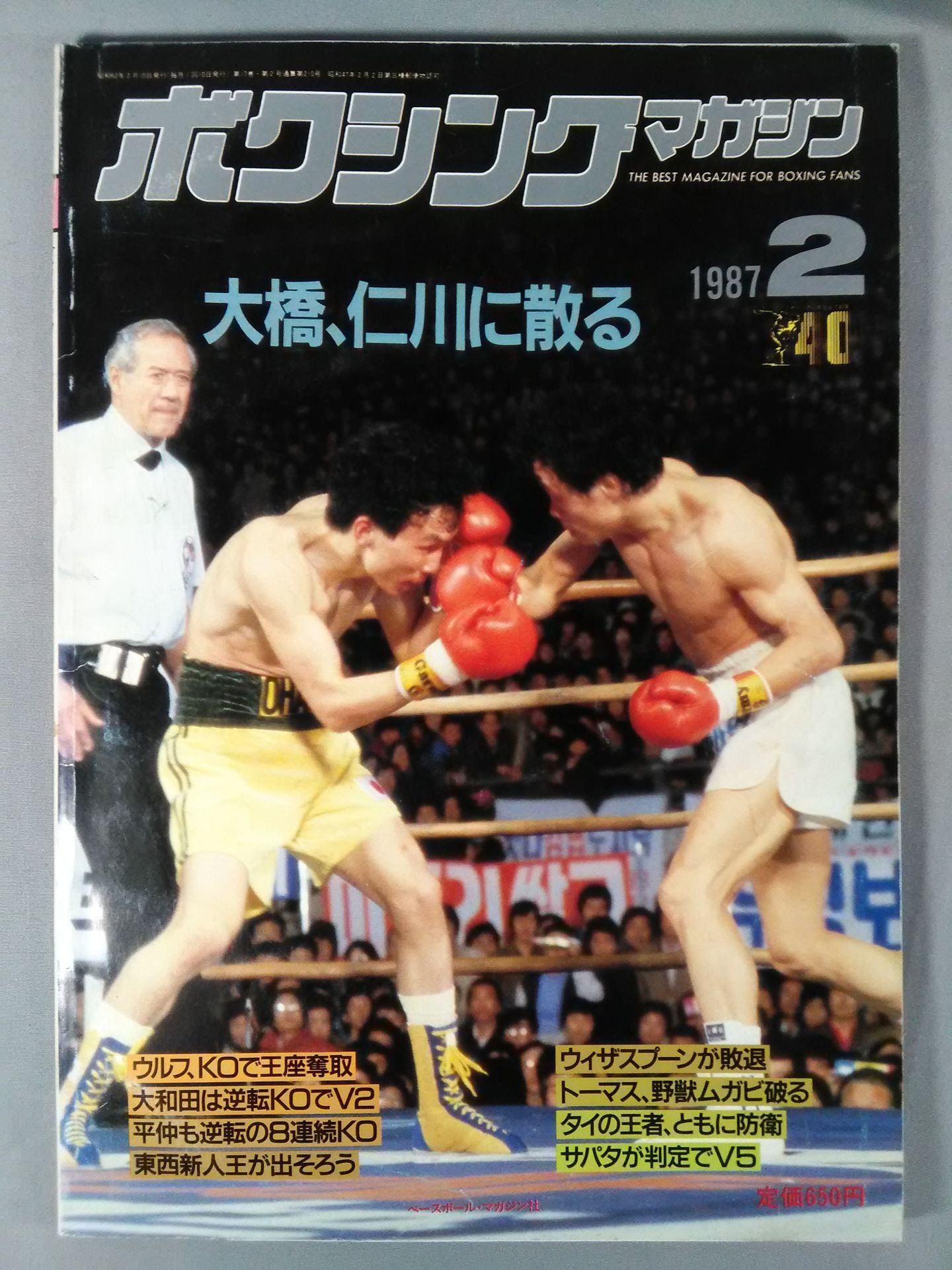 1987年 大橋、仁川に散る ウルフ、KOで王座奪取 大和田は逆転KOでV2 平仲も逆転の8連続KO 東西新人王が出そろう ウィザスプーンが敗退 トーマス、野獣ムガビ破る タイの王者、ともに防衛 サパタが判定でV5 / 【付録】◯ピンナップ(マイケル・スピンクス) 表紙:大橋秀行vs張正九