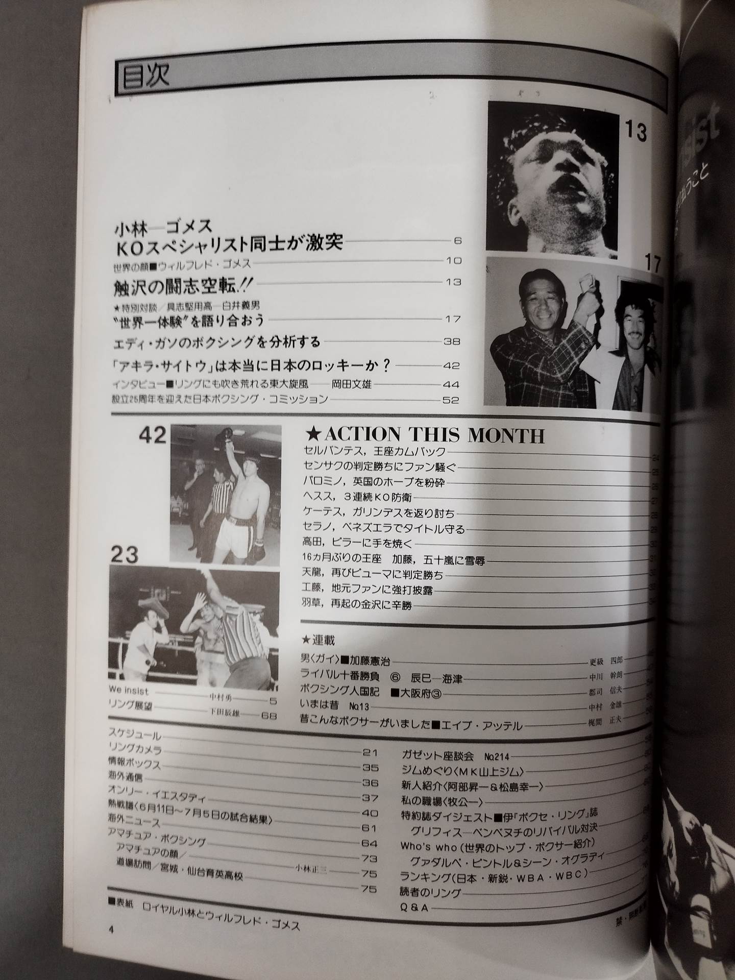 ゴメス-小林 KOスペシャリスト同士が激突!! 触沢の闘志空転!! WBC世界フライ級選手権戦 対談/具志堅用高-白井義男 ”世界一”体験を語り合おう 表紙:ロイヤル小林、ウィルフレド・ゴメス