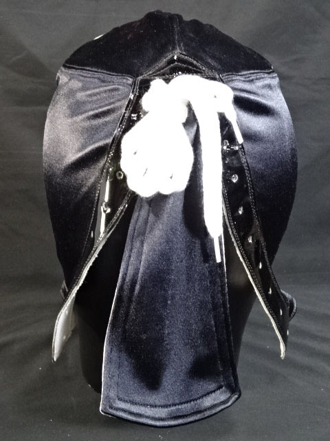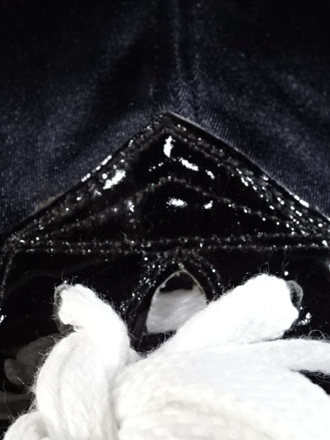 黒サテン生地 銀革フチ&黒革フチ