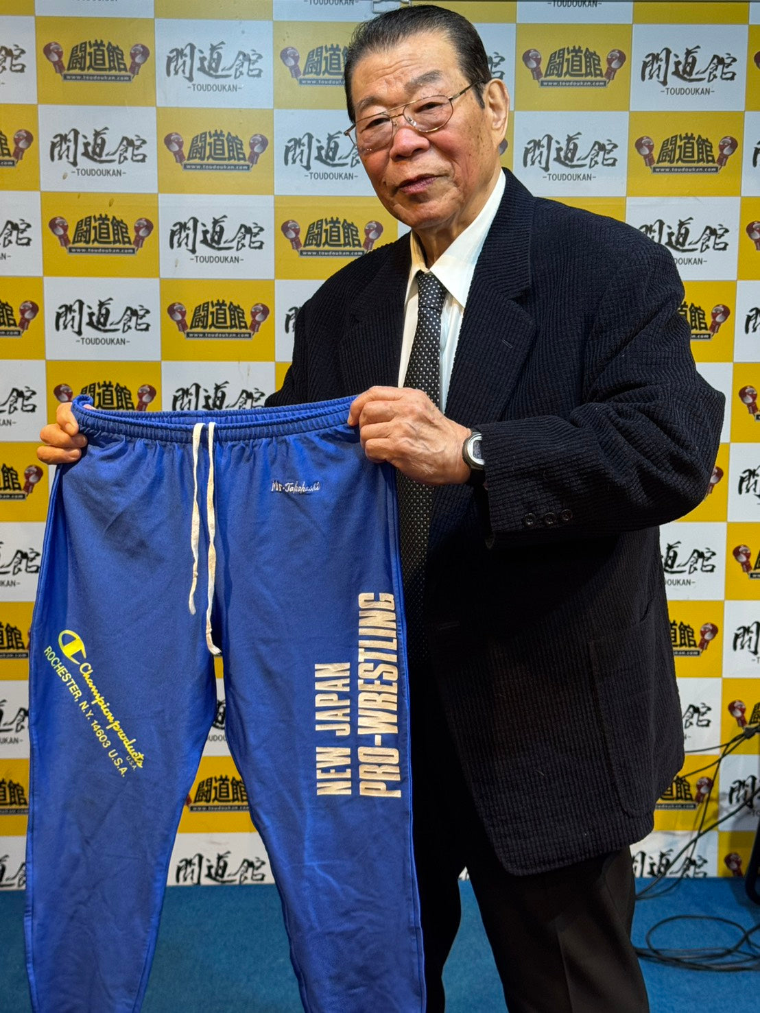新日本プロレス在籍時に使用していたもの 「Mr.Takahashi」ネーム入り チャンピオン製 手に持った写真付