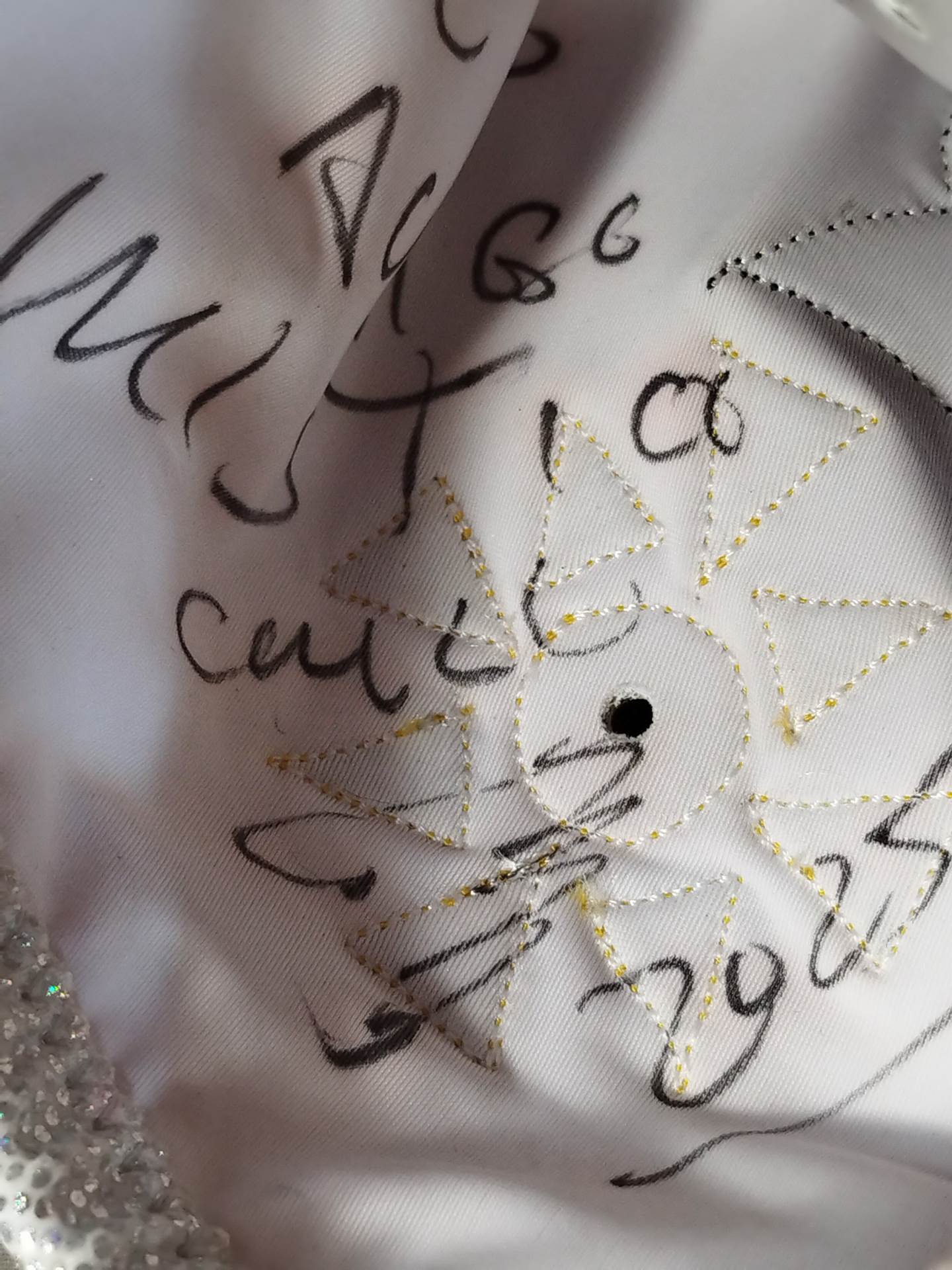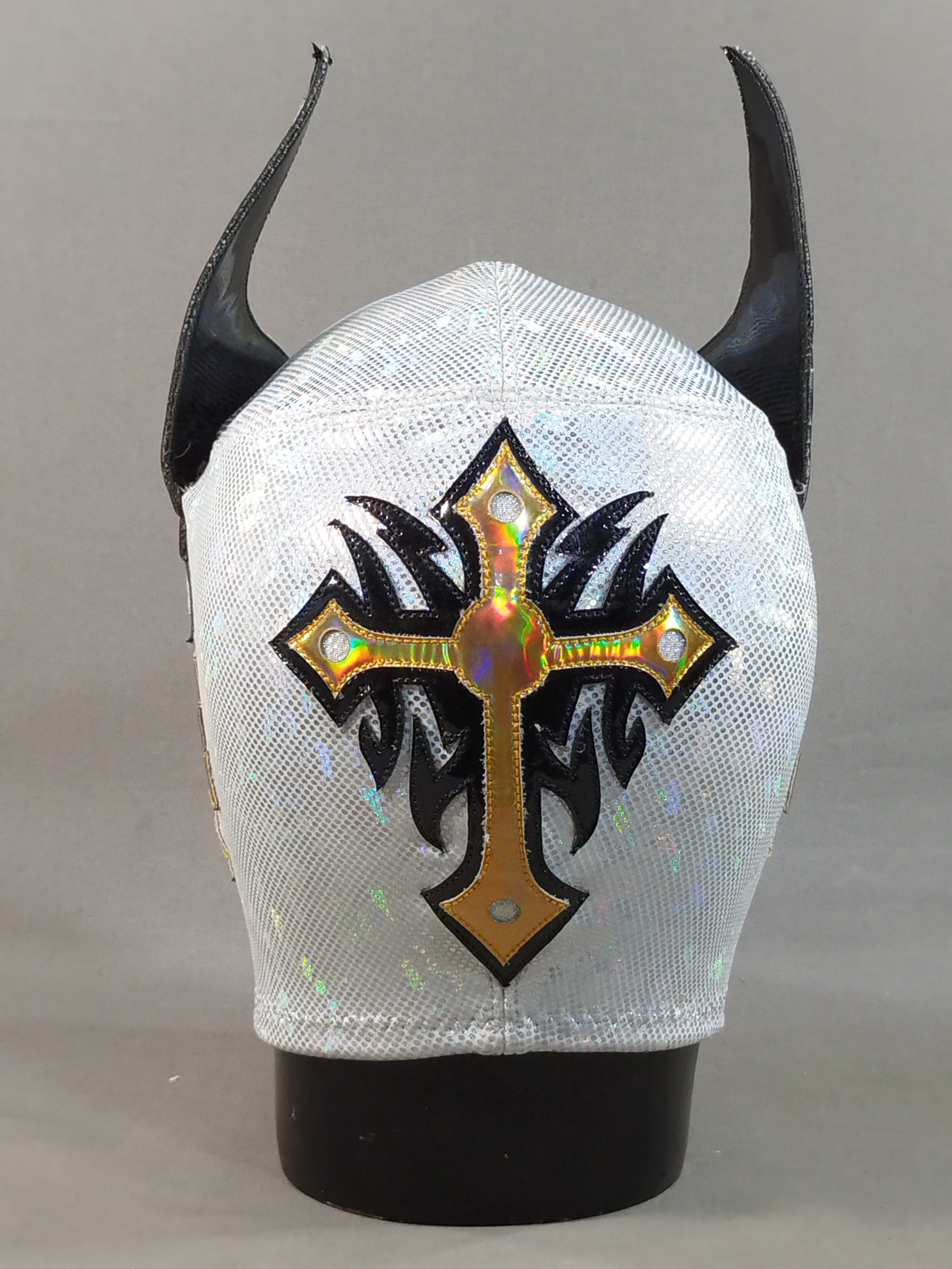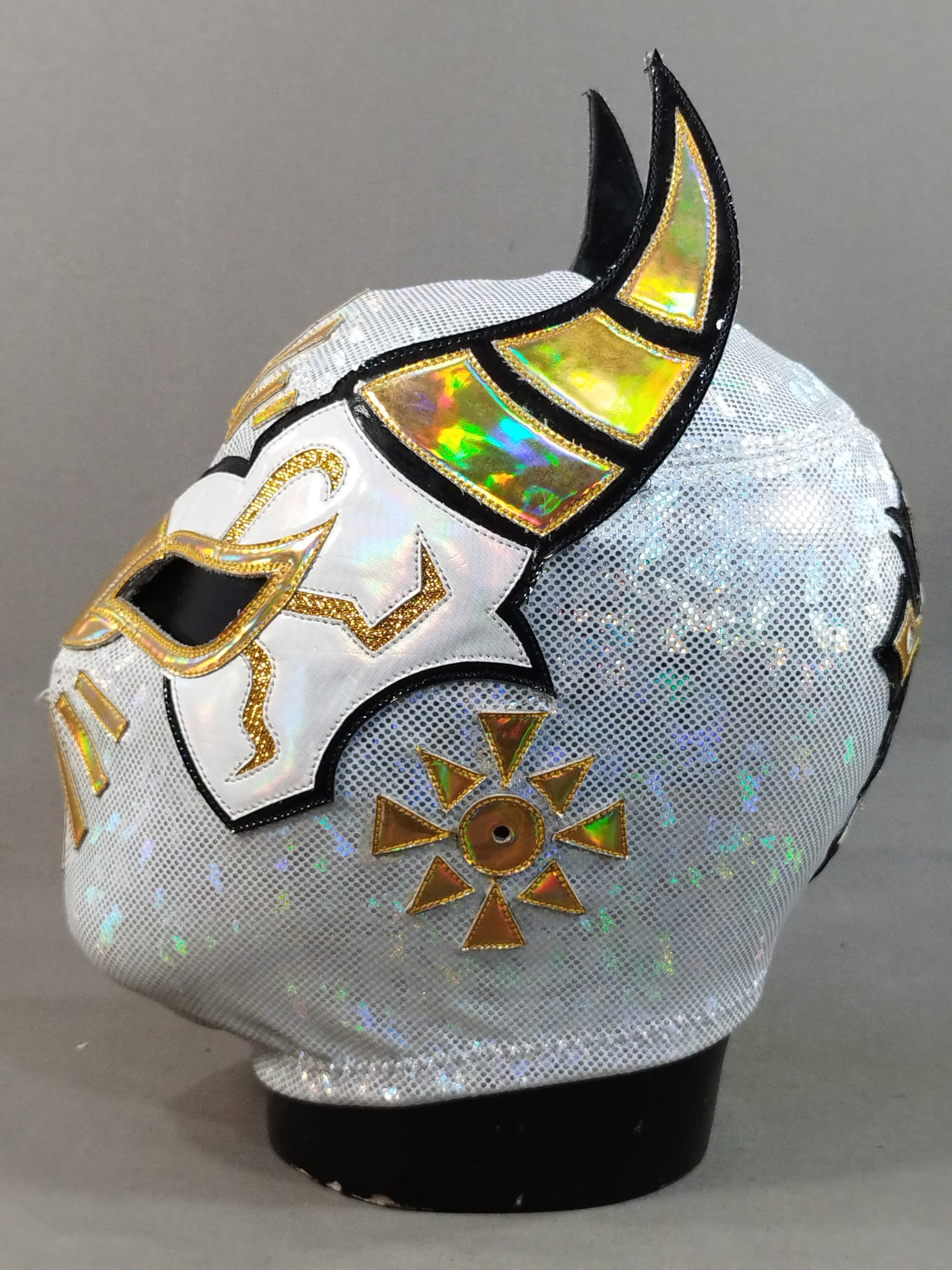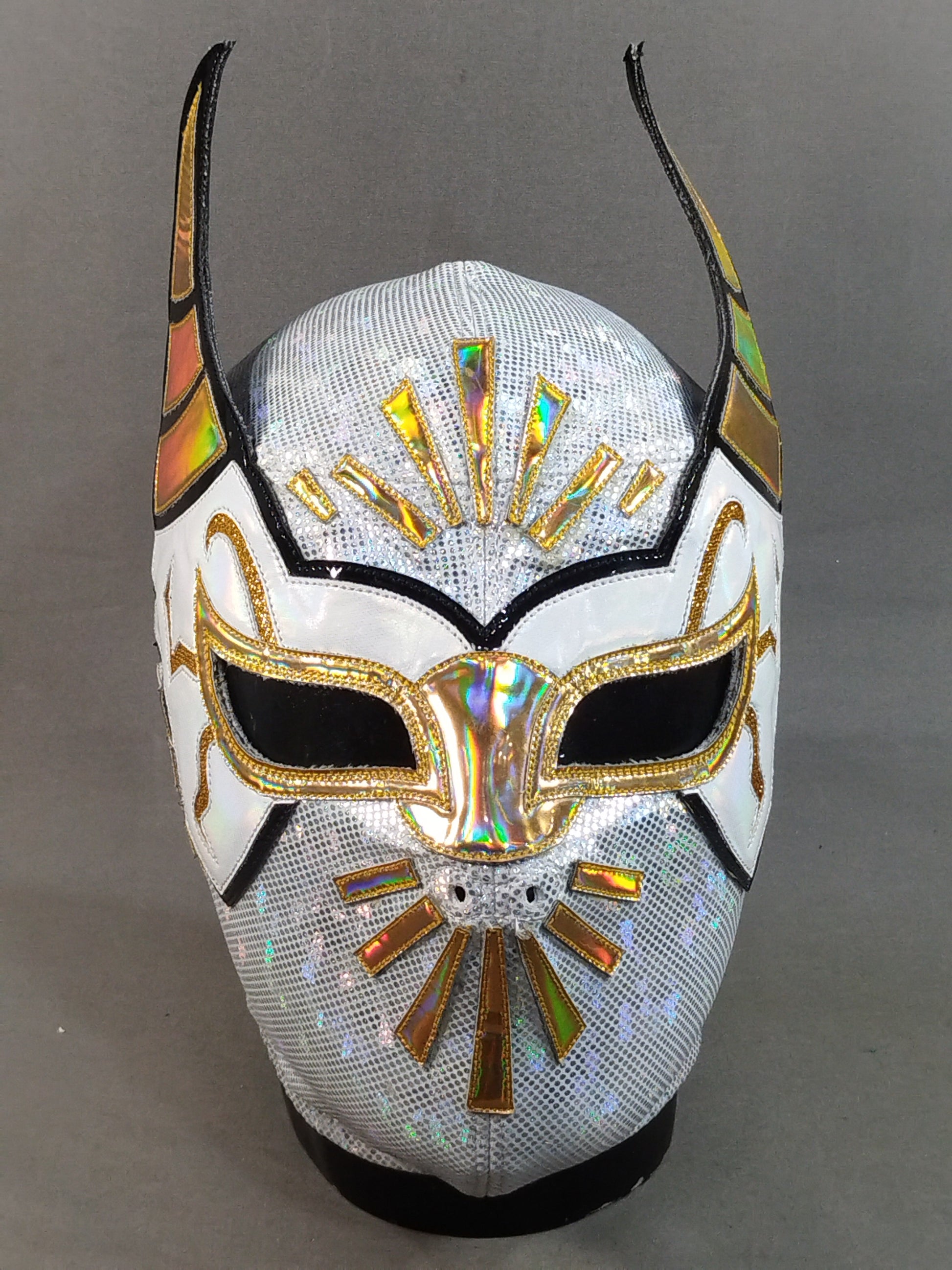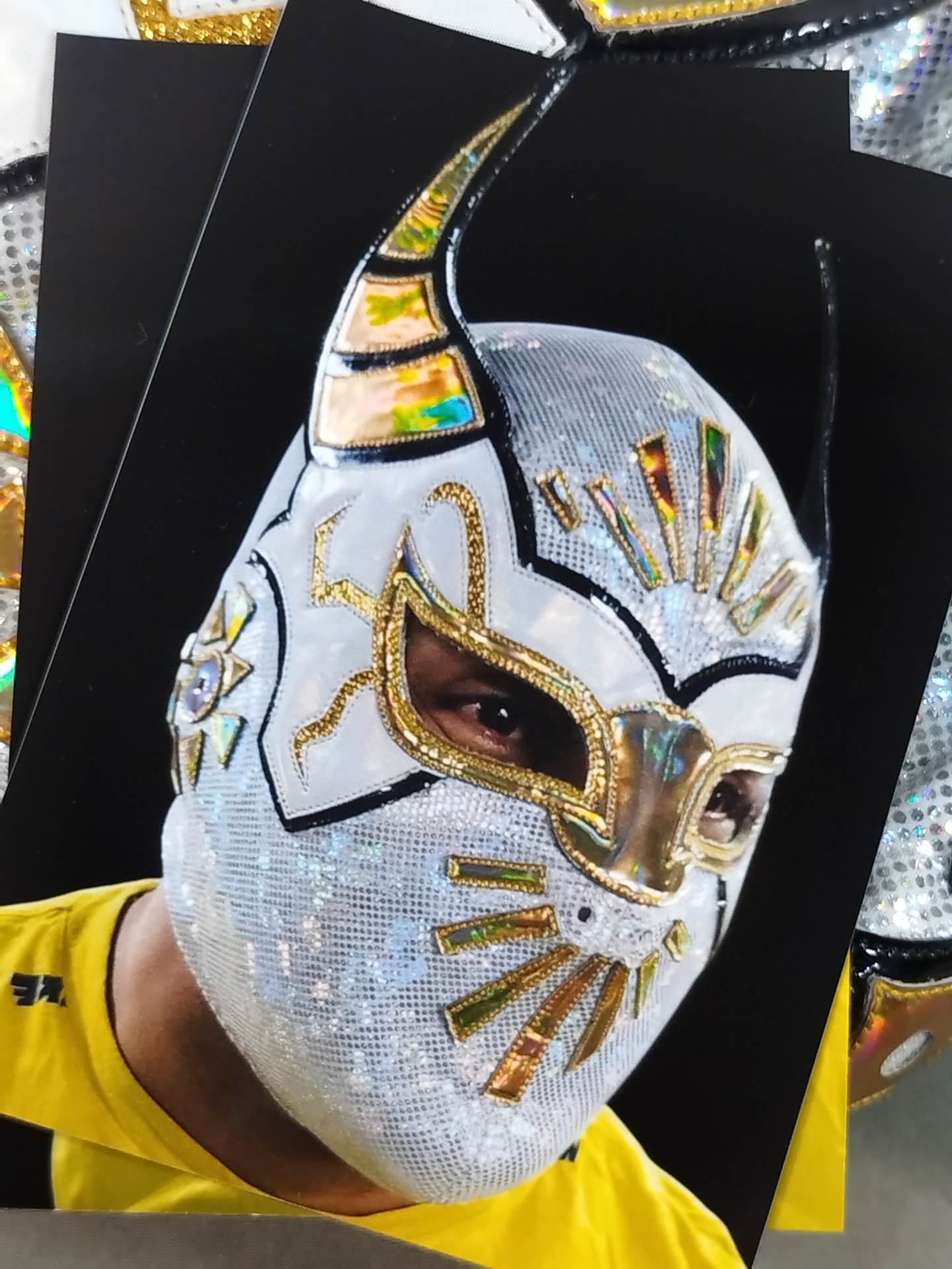 ★アベルノとのコラボタイプ★ サイン入り(CMLL 2025) 着用写真付 銀特殊レオタード2重生地 黒地パールフチ&金メタリックフチ