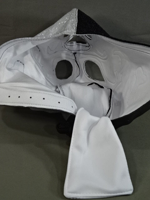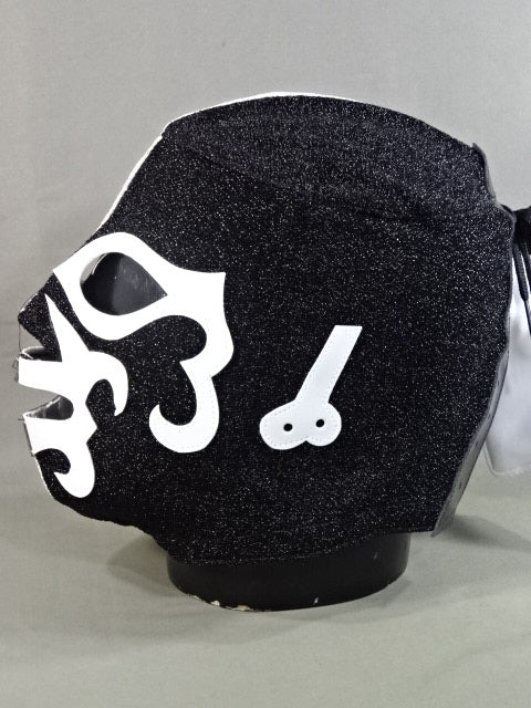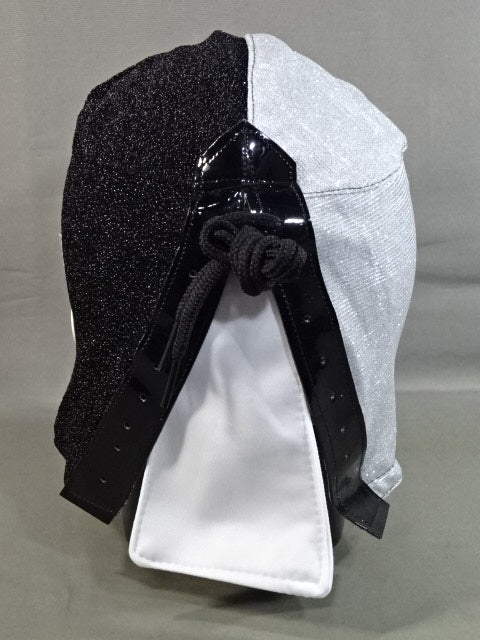 ★ハイグレードセミレプリカマスク★ 銀&黒ハーフブリオーサ生地 黒フチ&白フチ