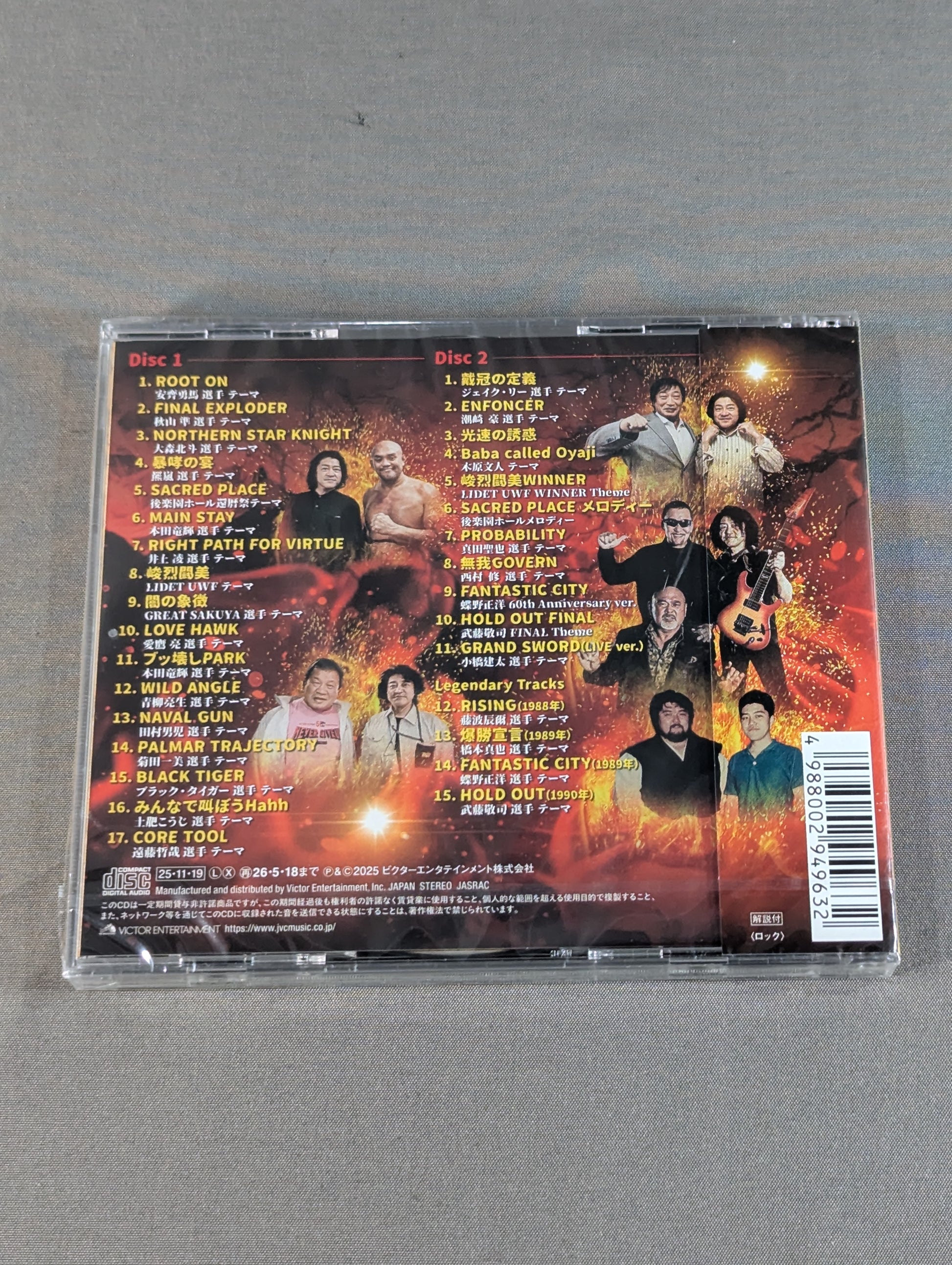 武藤敬司、蝶野正洋、橋本真也、小橋建太、秋山準といったレジェンド選手から安齊勇馬、ジェイク・リーら新世代スターまで、選手らの入場テーマを収録!世代や団体の垣根を越え、伝説を彩る聖歌(アンセム)の系譜が今ここに。/ メガジャケット(Victor厚紙)サイズ:24cm×24cm