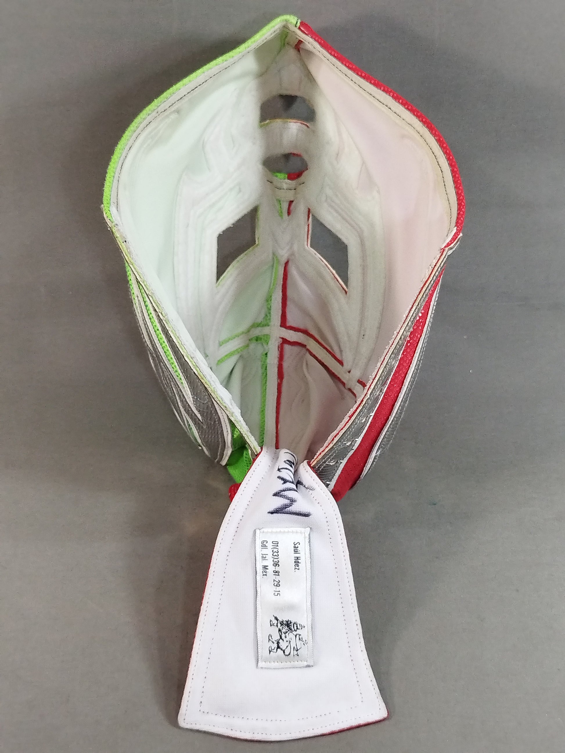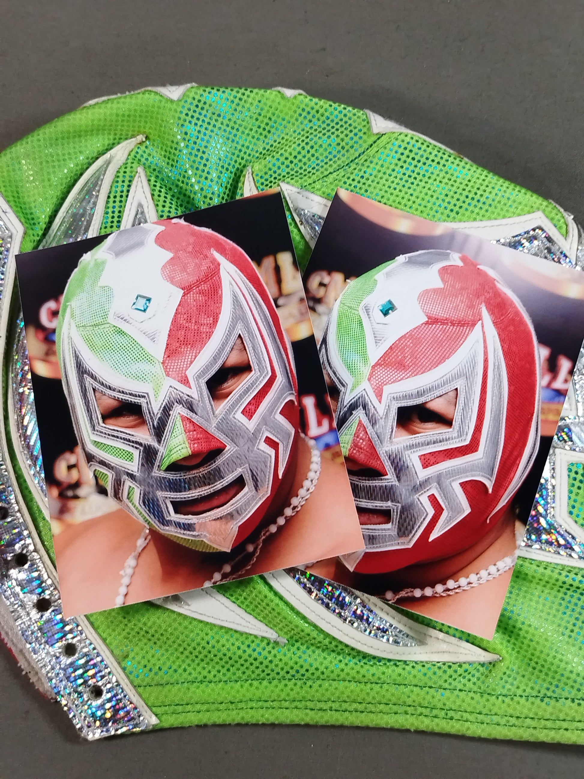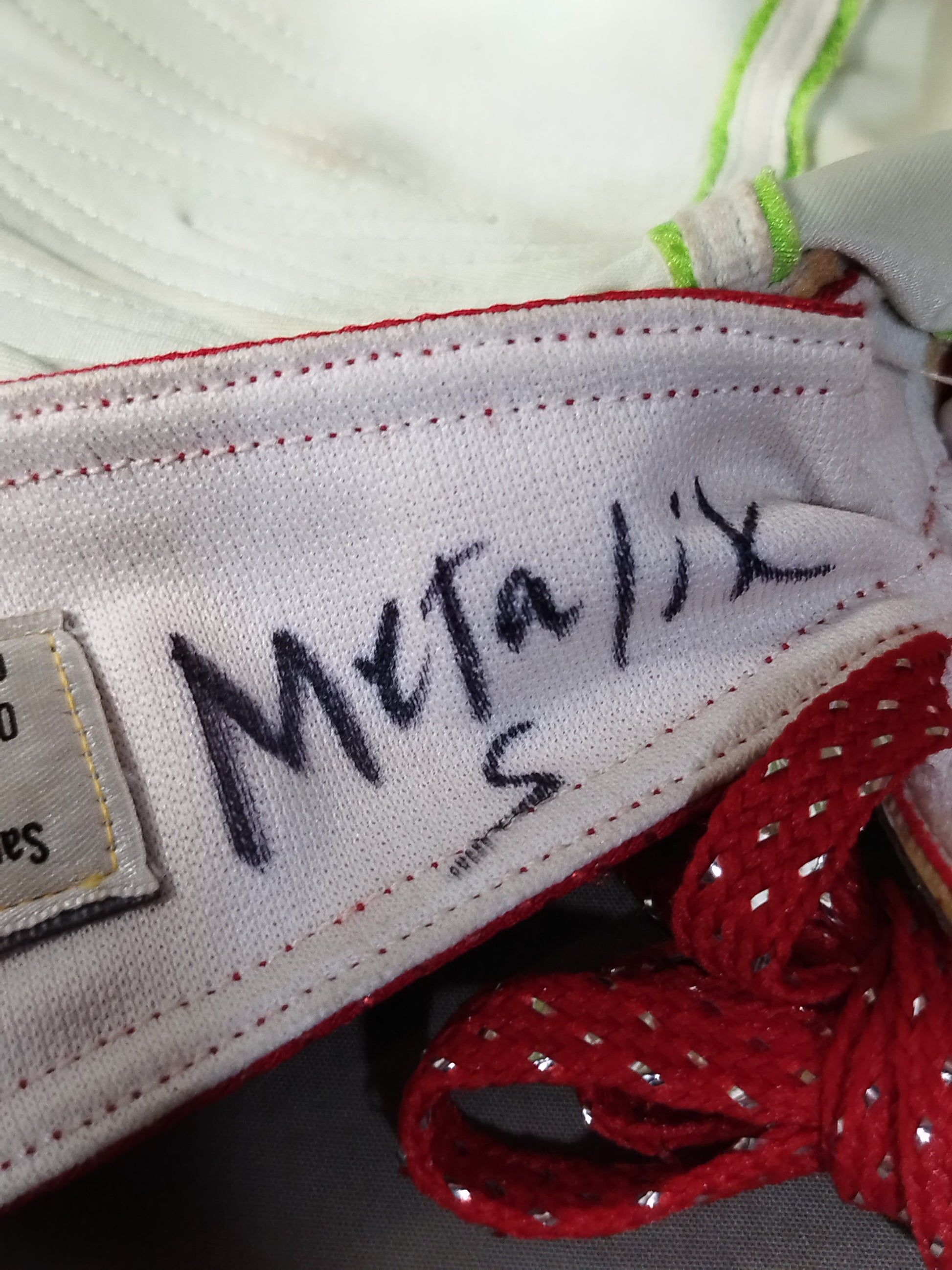 本人使用サイン入り 着用写真付 黄緑&赤特殊レオタード2重生地 白地銀特殊フチ