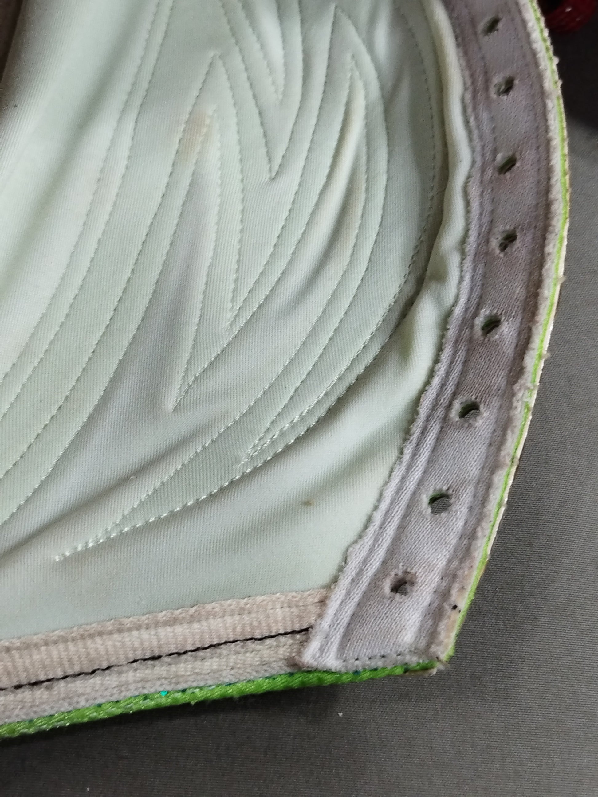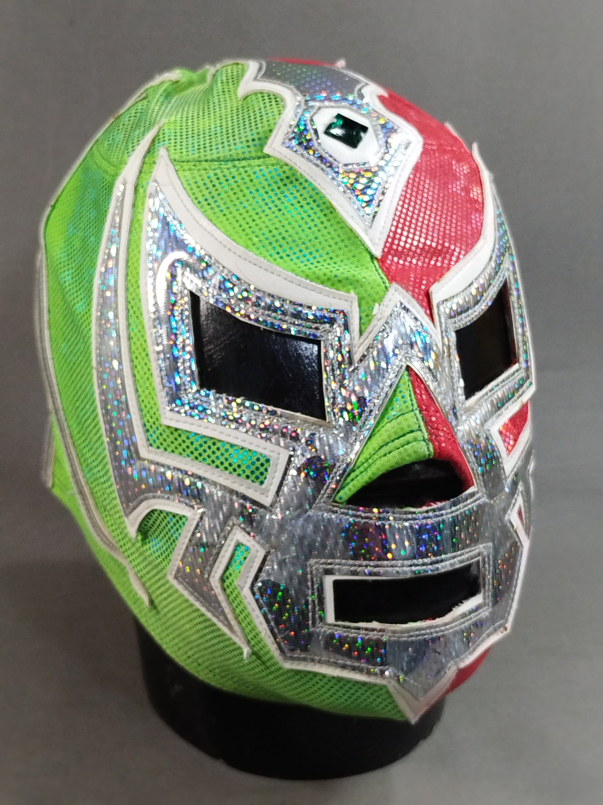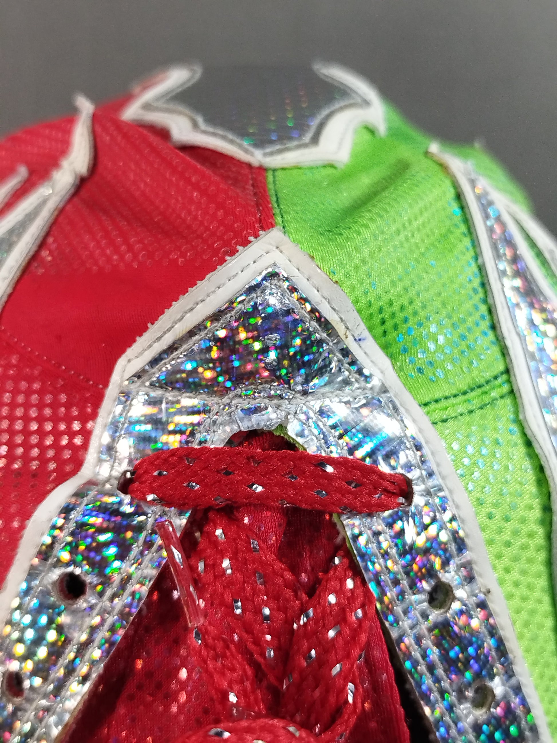 本人使用サイン入り 着用写真付 黄緑&赤特殊レオタード2重生地 白地銀特殊フチ