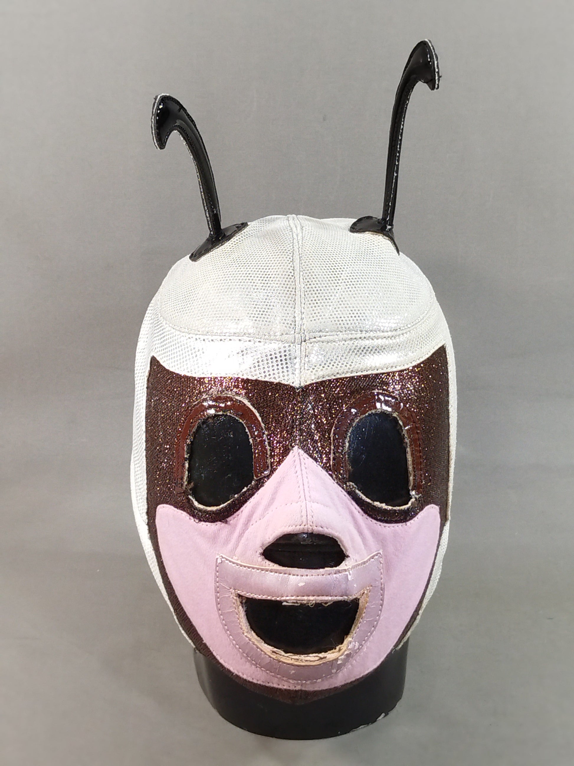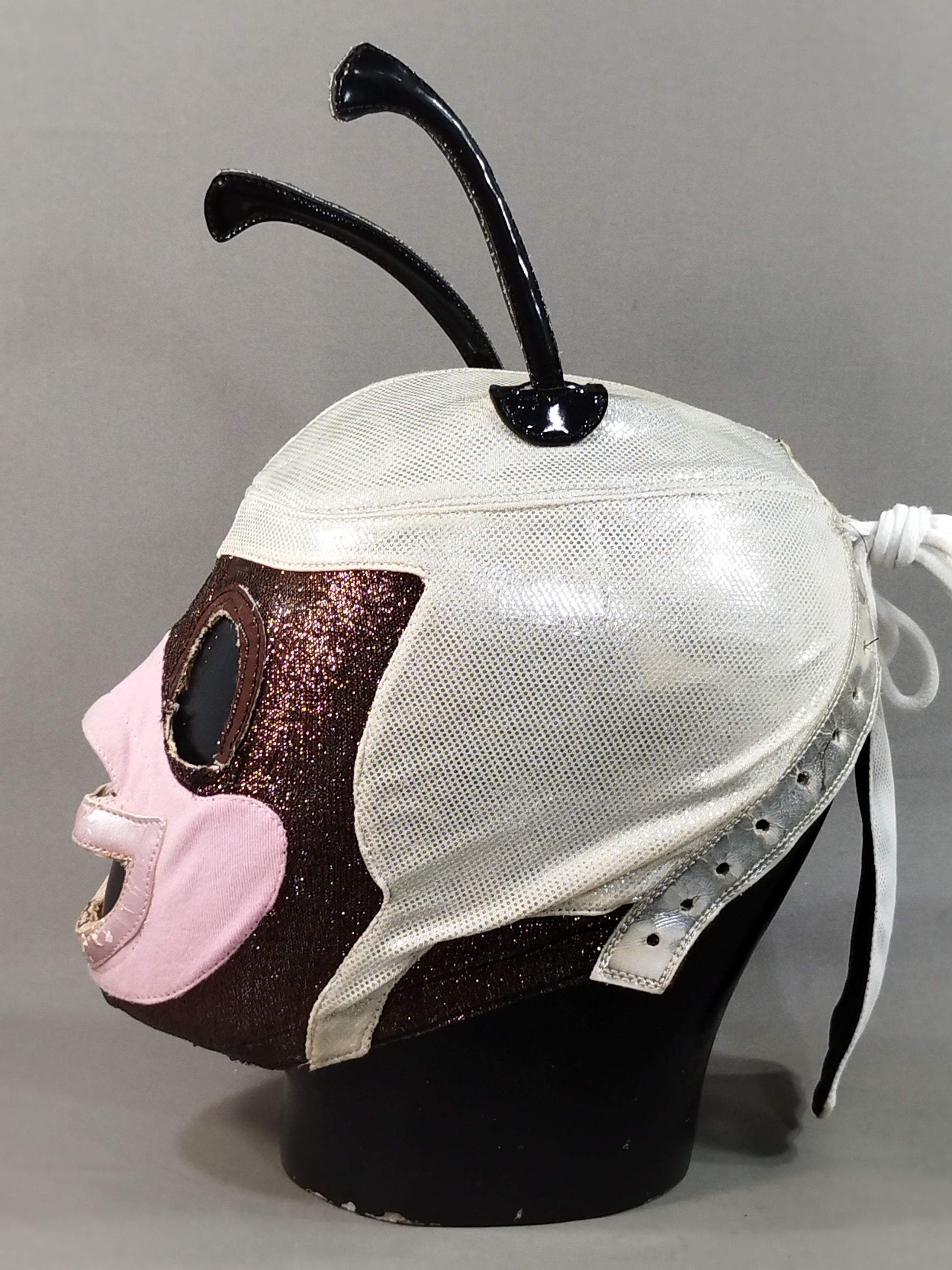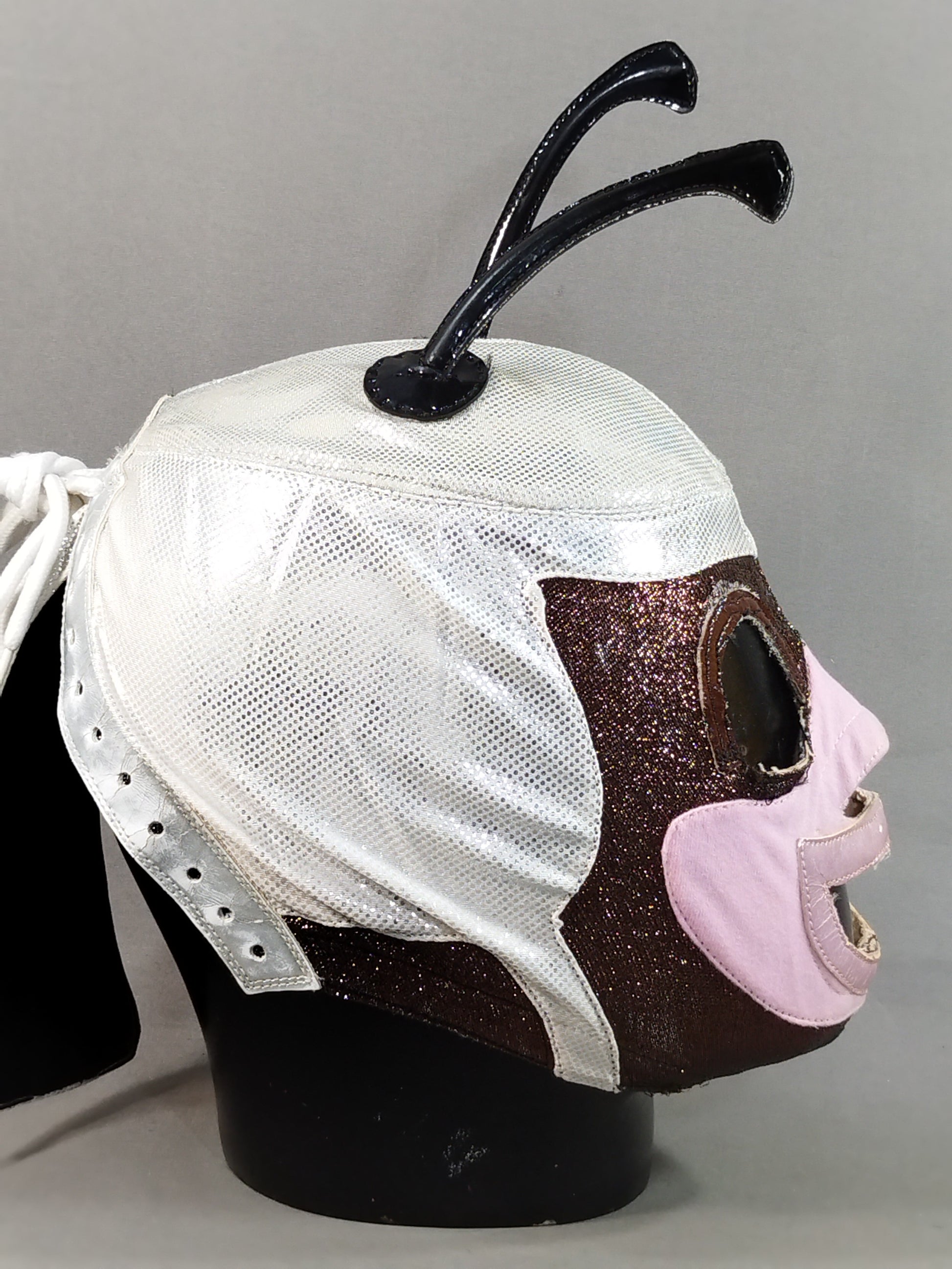 本人使用サイン入り 銀特殊レオタード2重生地(一部茶色ラメ&ピンク2重生地) 茶色革フチ&薄紫フチ