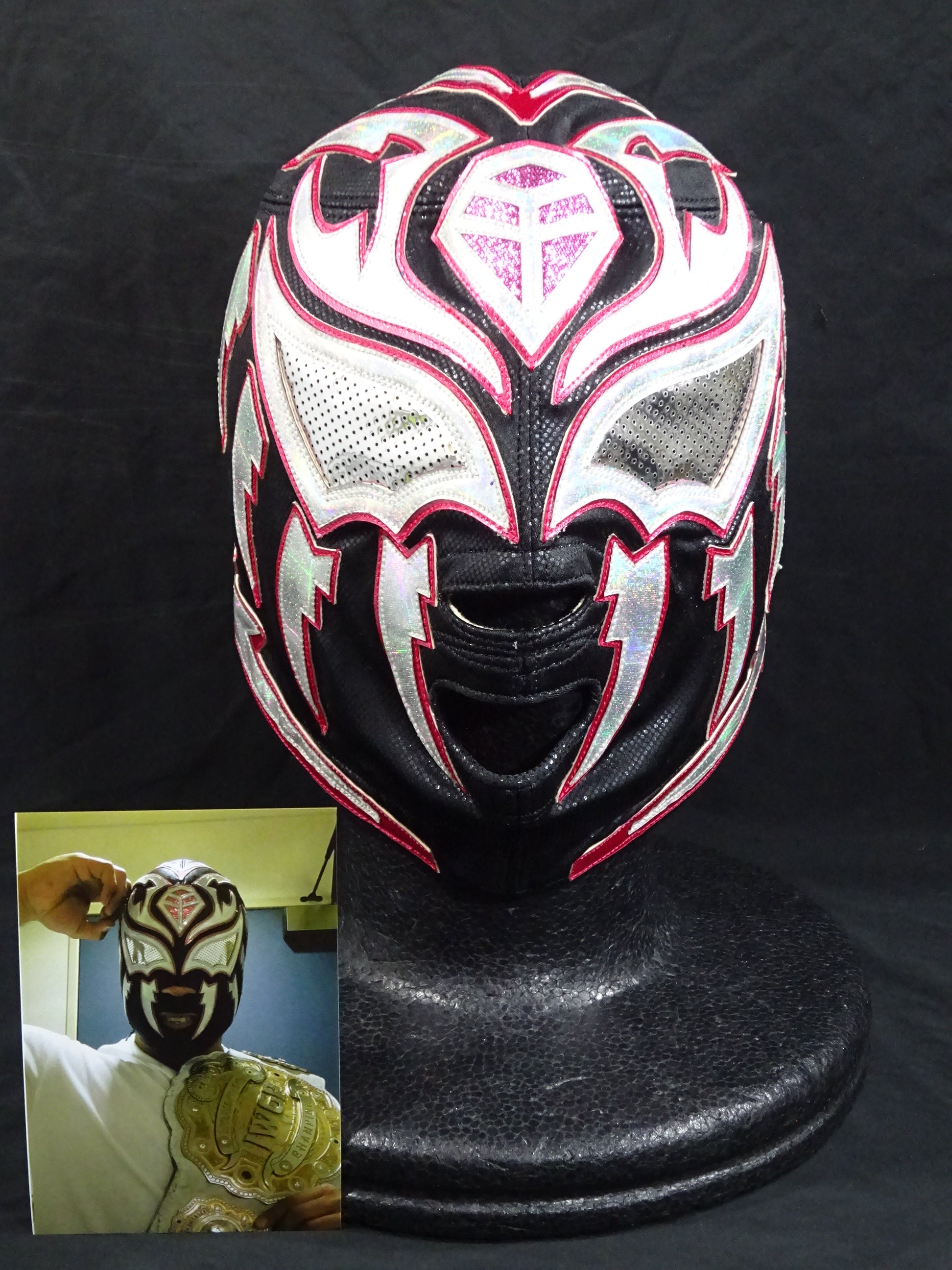 本人使用サイン入り 着用写真付 黒特殊レオタード2重生地 ピンクメタリック地銀特殊フチ
