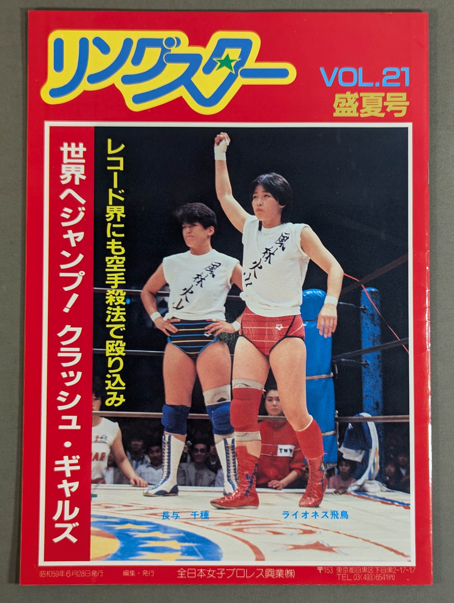 レコード界にも空手殺法で殴り込み / 世界へジャンプ!クラッシュギャルズ / 表紙:長与千種、ライオネス飛鳥 / 裏表紙:ダンプ松本、クレーン・ユウ
