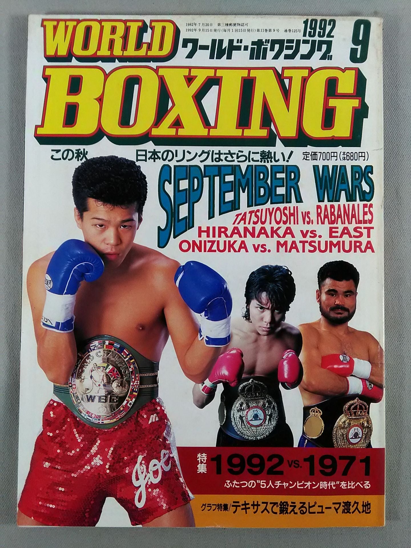 1992年 初防衛線に望む辰吉・鬼塚・平仲 / 【付録】◯白黒ブロマイド(オーランド・カニザレス) ◯ピンナップ(朴永均) 表紙:辰吉、鬼塚、平仲