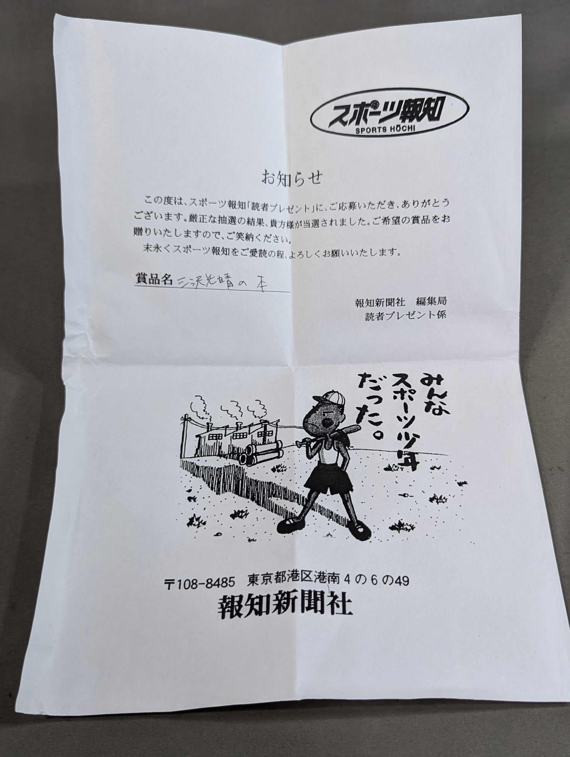 著者の三沢光晴選手直筆サイン入り&報知新聞社からの当選通知書付!