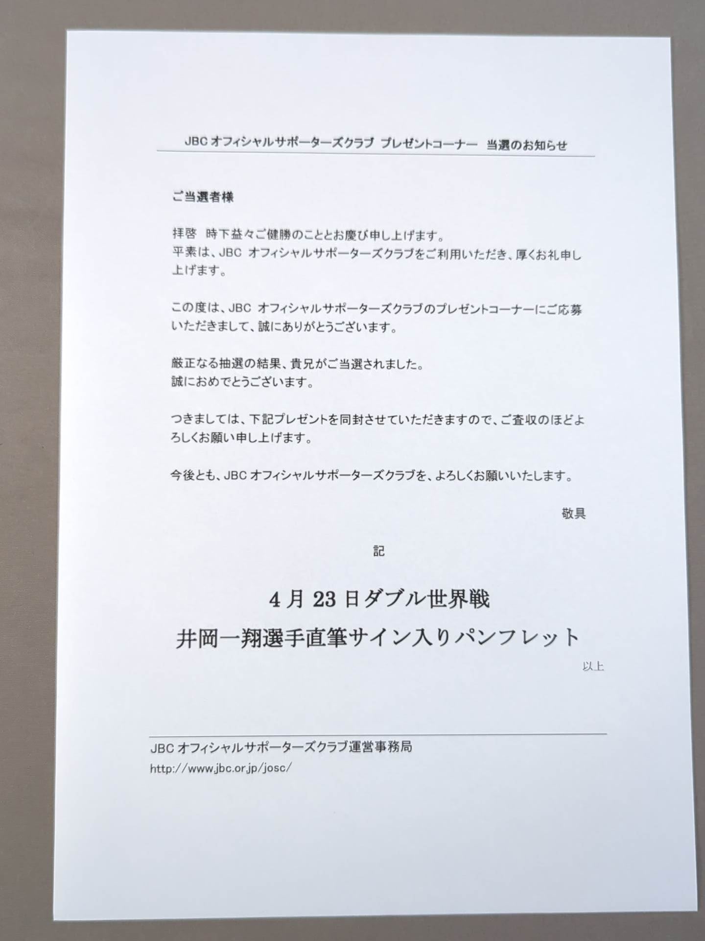 | 状態詳細 | 当選通知書付き |