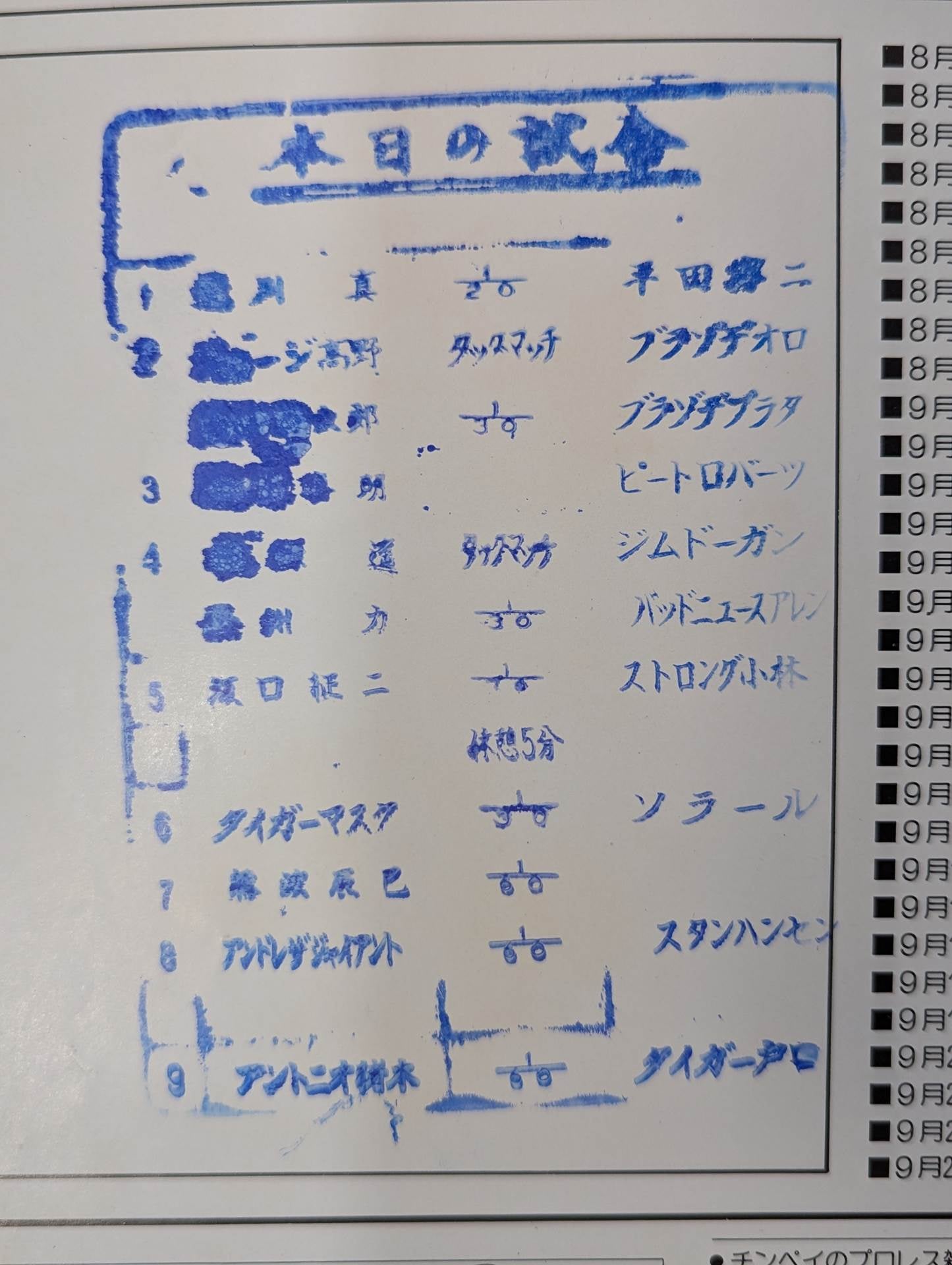 会場:田園コロシアム(最終戦) / スタンプあり:【IWGPアジアゾーン予選リーグ】アントニオ猪木vsタイガー戸口 / アンドレ・ザ・ジャイアントvsスタン・ハンセン / ラッシャー木村「こんばんは」事件