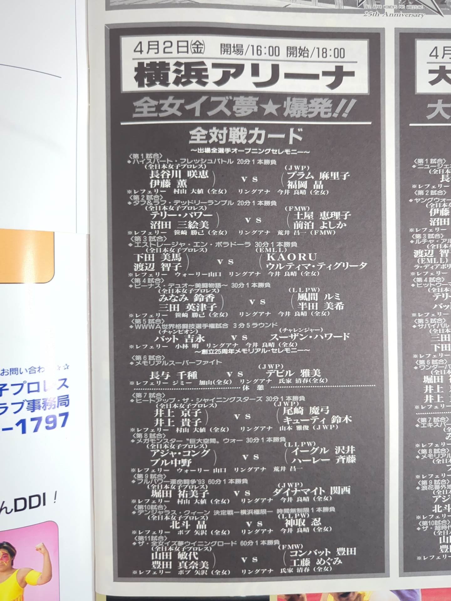 印刷対戦カード:(4月2日 会場:横浜アリーナ)山田敏代&豊田真奈美vsコンバット豊田&工藤めぐみ