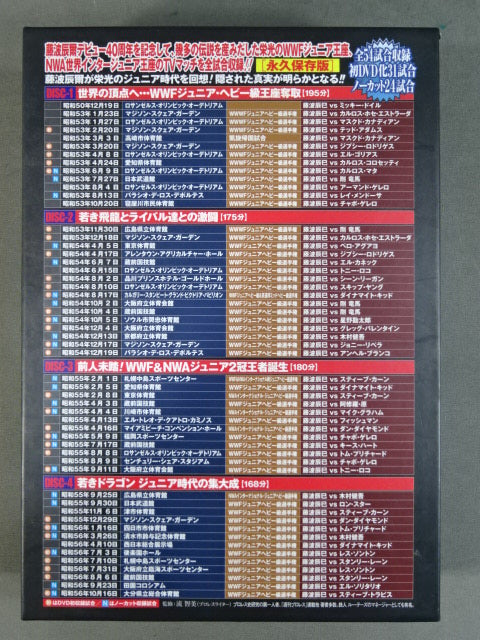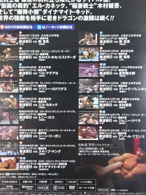 藤波辰爾デビュー40周年を記念して、幾多の伝説を産みだした栄光のWWFジュニア王座、NWAインタージュニア王座のTVマッチを完全収録!! 【永久保存版】藤波辰爾が栄光のジュニア時代を回想! 隠された真実が明らかとなる!! 【全54試合収録 初DVD化31試合ノーカット24試合】