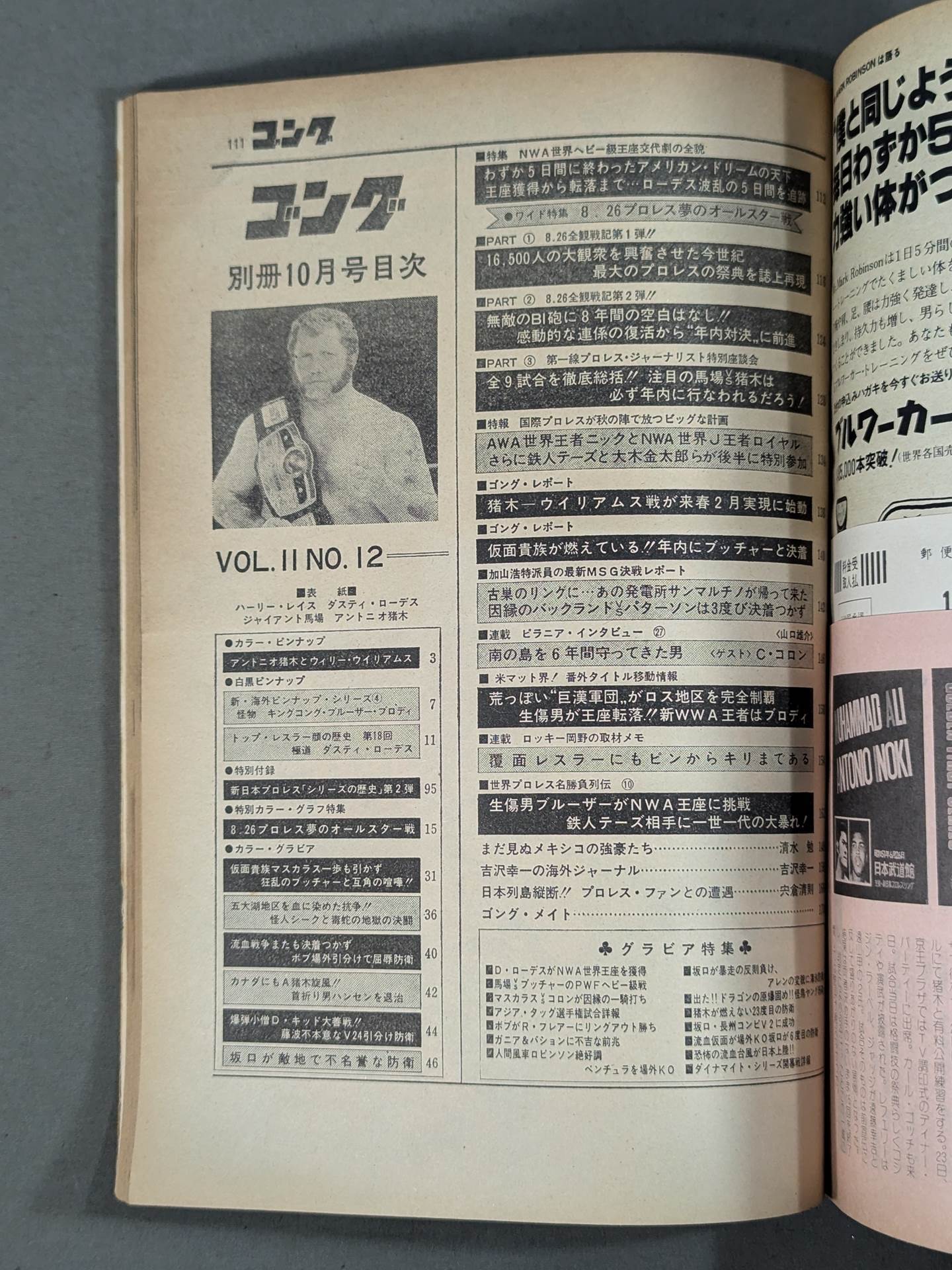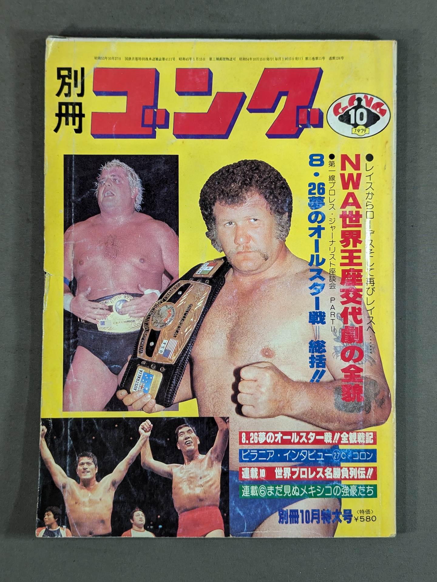 NWA世界王座交代劇の全貌 8・26夢のオールスター戦総括! / 【付録】〇カラーピンナップ(アントニオ猪木vsウィリー・ウィリアムス) 〇白黒ピンナップ(新海外ピンナップシリーズ ブルーザー・ブロディ) 〇白黒ピンナップ(ダスティ・ローデス) 〇特別付録(新日本プロレス「シリーズの歴史」第2弾) 表紙:ハーリー・レイス、ダスティ・ローデス、アントニオ猪木、ジャイアント馬場