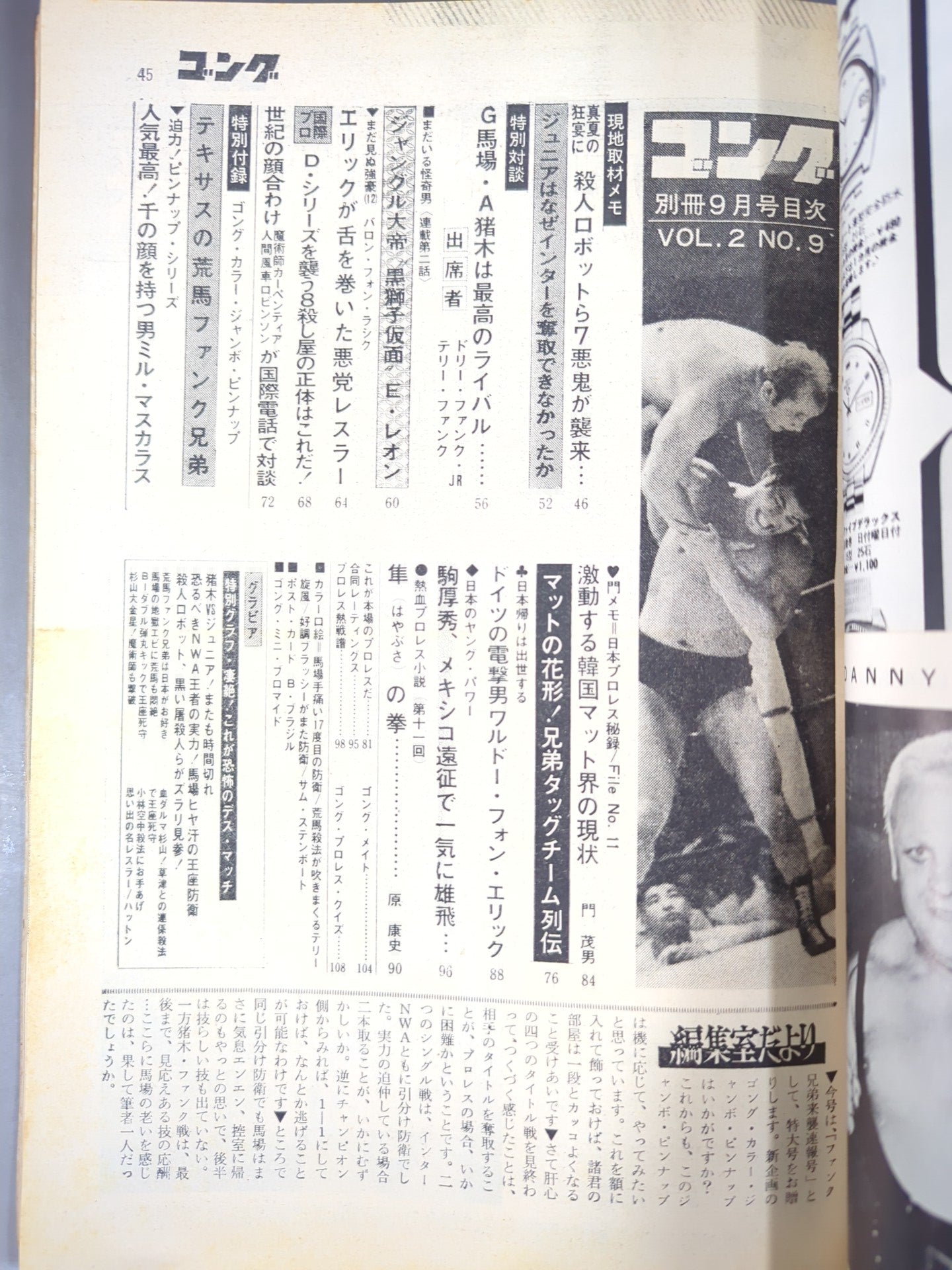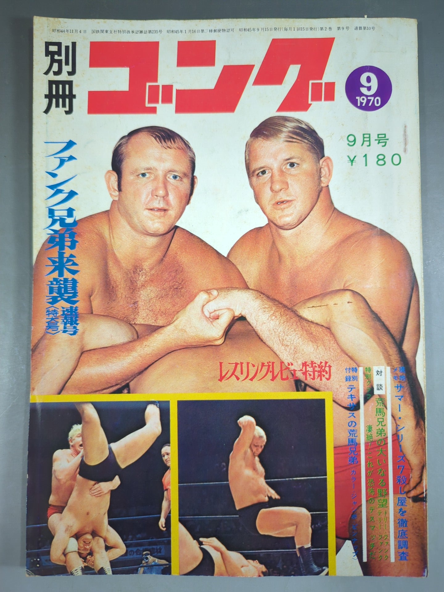 ファンク兄弟来襲速報号 サマー・シリーズ7殺し屋を徹底調査 特別グラフ 凄絶! これが恐怖のデスマッチ 荒馬兄弟の大いなる野望 / 【付録】◯ピンナップ(ミル・マスカラス) ◯ポストカード(ボボ・ブラジル) ◯ゴング・ミニ・ブロマイド ×特別付録(テキサスの荒馬ファンク兄弟ジャンボピンナップ)