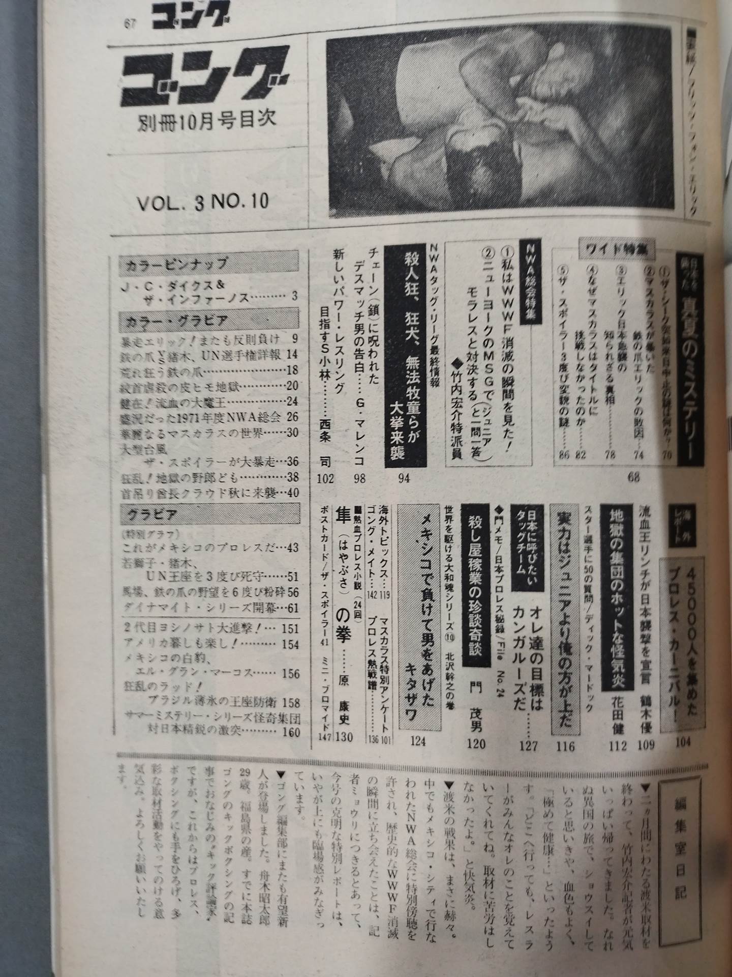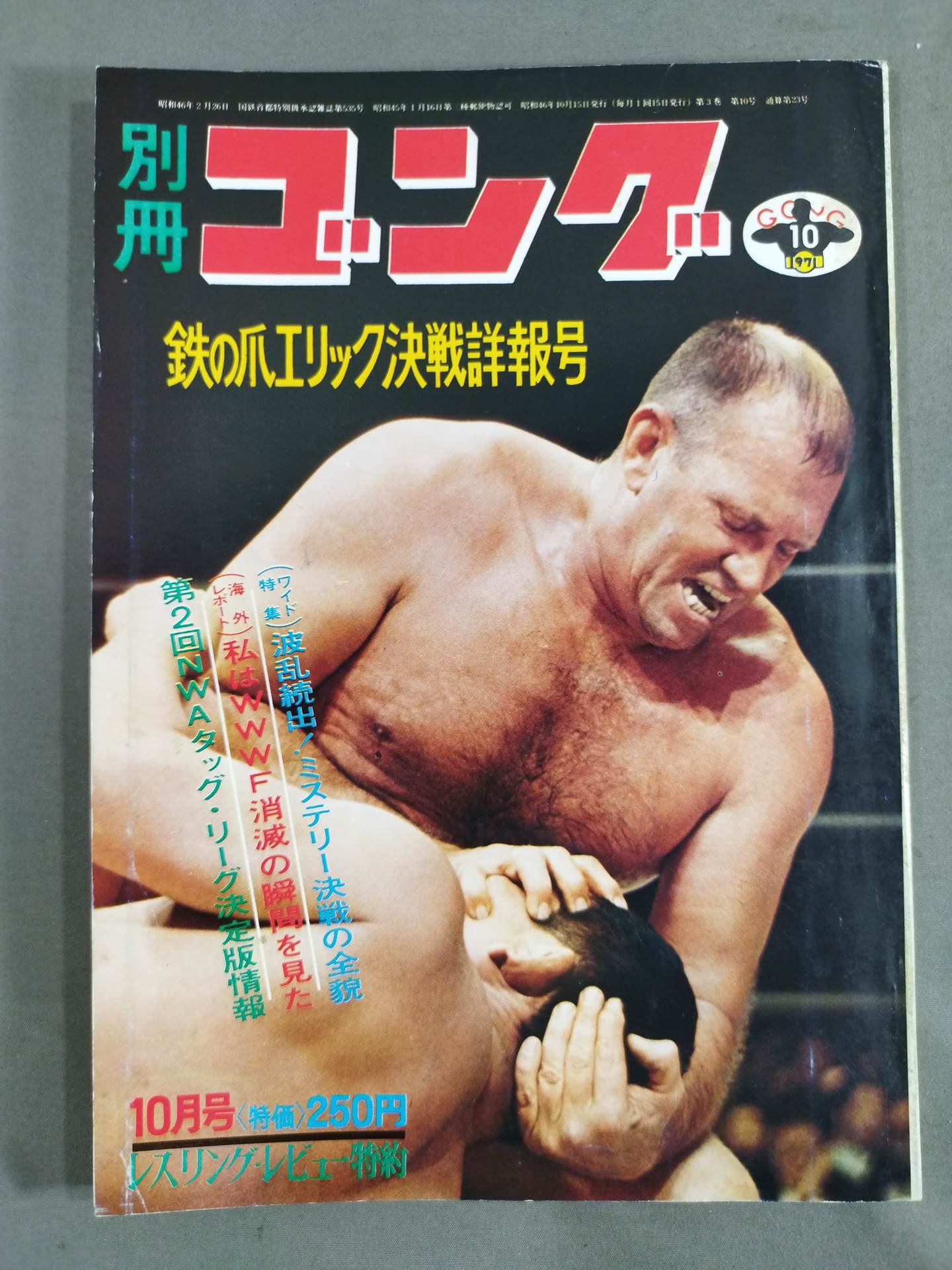 鉄の爪エリック決戦詳報号 波瀾続出!ミステリー決戦の全貌 私はWWWF消滅の瞬間を見た 第2回NWAタッグ・リーグ決定版情報 / 【付録】〇ポストカード(ザ・スポイラー) 〇ピンナップ(ダイクス&ザ・インフォーノス) ◯ゴング・ミニ・ブロマイド 表紙:フリッツ・フォン・エリック
