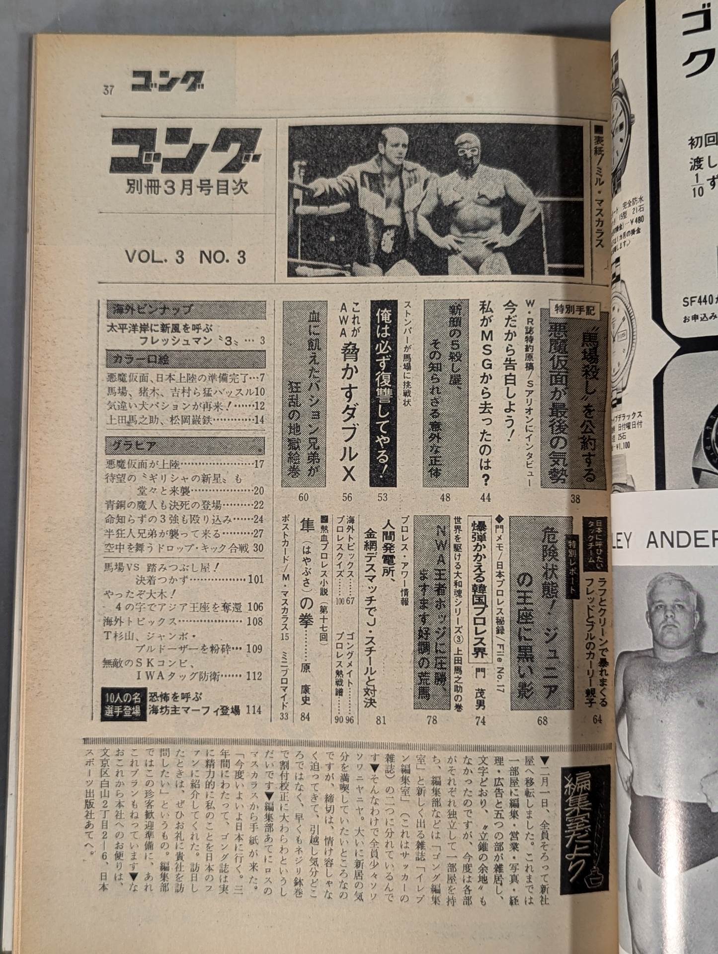 【ダイナミックシリーズ展望号】ミル・マスカラス大特集 / 付録:○ポストカード(ミル・マスカラス) ○ミニ・プロマイド ○ピンナップ(トニー・ロッカ、ペドロ・モラレス、高千穂明久)  / 表紙:ミル・マスカラス