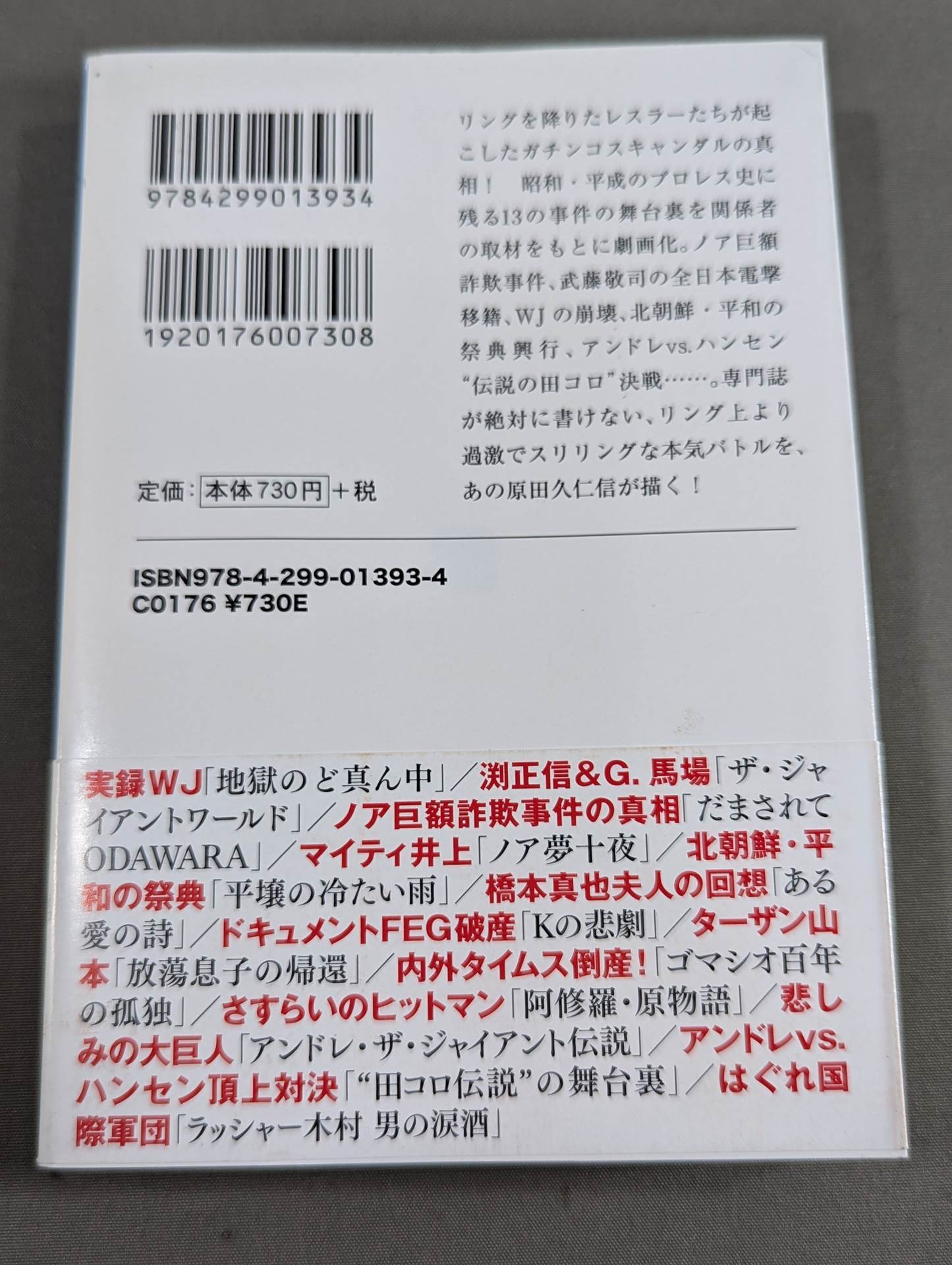 文(宝島SUGOI文庫) 宝島社 / 原田久仁信による「別冊宝島」プロレスシリーズの人気劇画を一挙全作品収録! 伝説のアンドレvsハンセン、ラッシャー木村の「男道」、実録WJ「地獄のど真ん中」、猪木「平和の祭典」、渕正信が見た「ジャイアントワールド」、ノア巨額詐欺事件「だまされてODAWARA」、谷川貞治「Kの悲劇」ほか、プロレス界の裏ネタが満載!お買い得の一冊!!