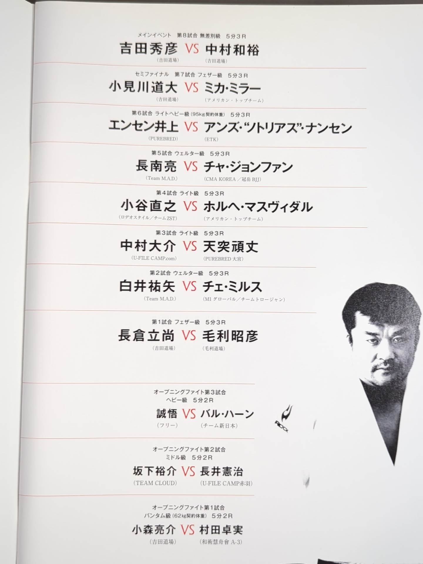 会場:日本武道館 /  印刷対戦カード:吉田秀彦vs中村和裕 / 小見川道大vsミカ・ミラー