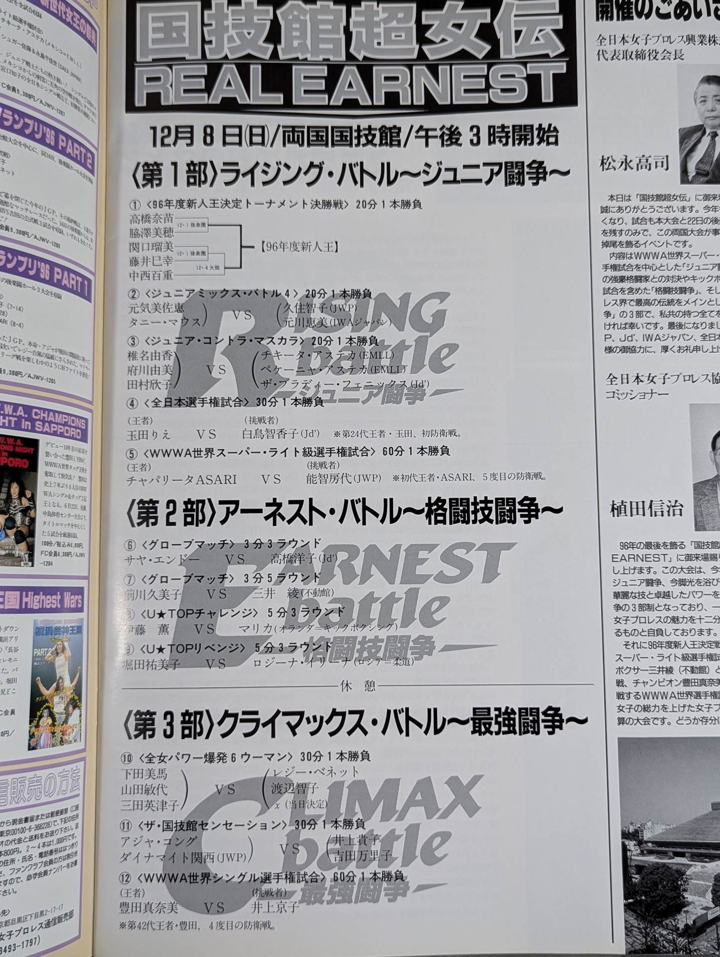 会場:両国国技館 / 印刷対戦カード(3部構成):【WWWA世界シングル選手権試合】豊田真奈美vs井上京子