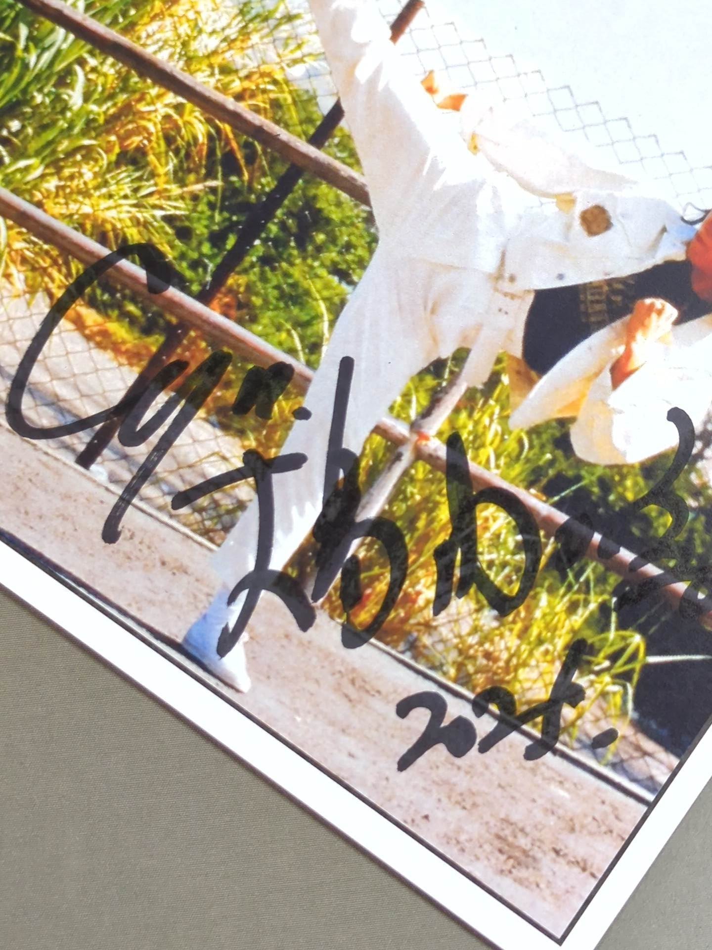 2025年12月20日&21日に闘道館で行われたイベント限定ポートレート。世界的アクション女優 大島由加里が、香港アクション映画のレジェンド ウォン・チェンリーとのイベント当日に入れた直筆サイン 。