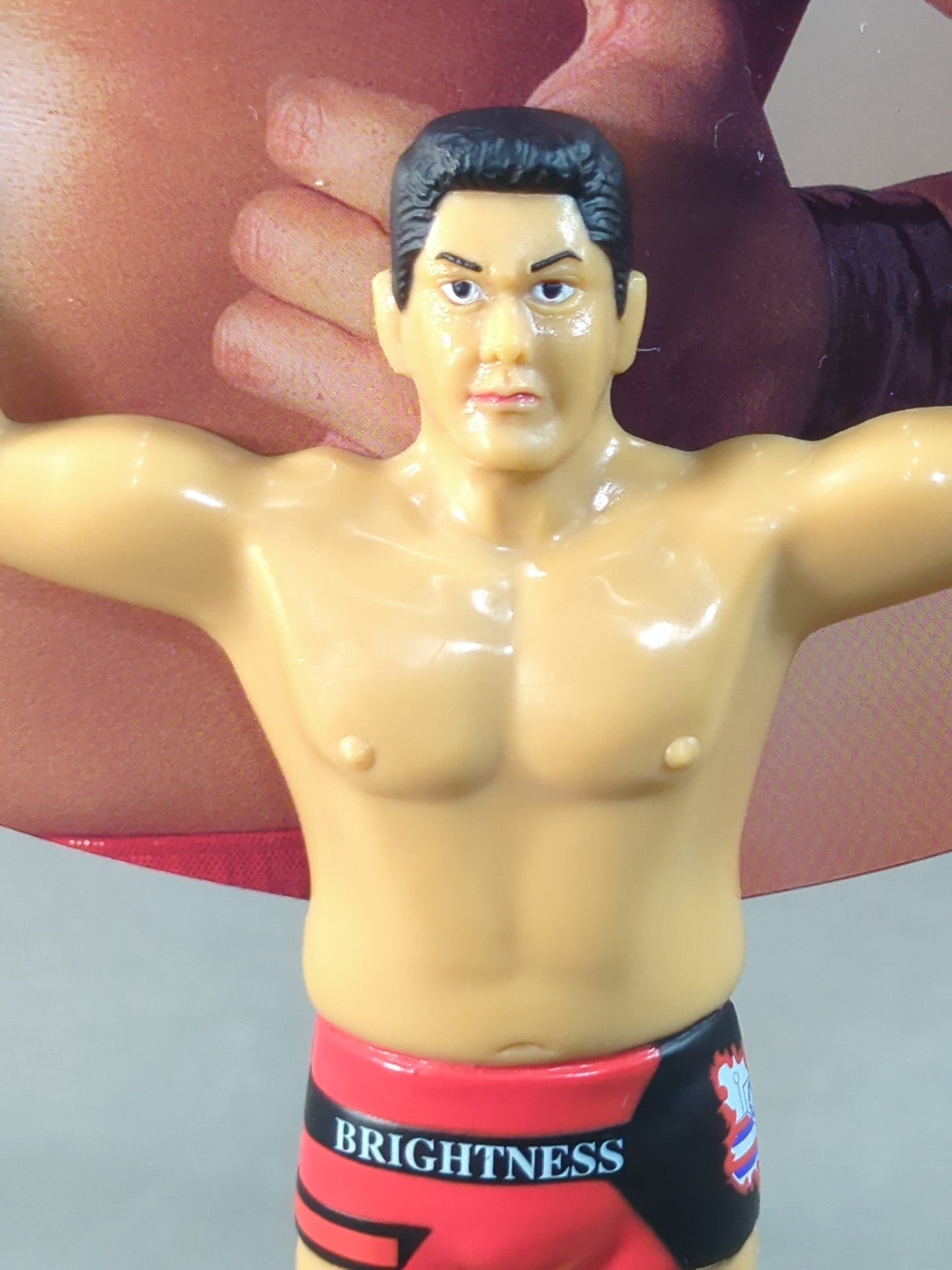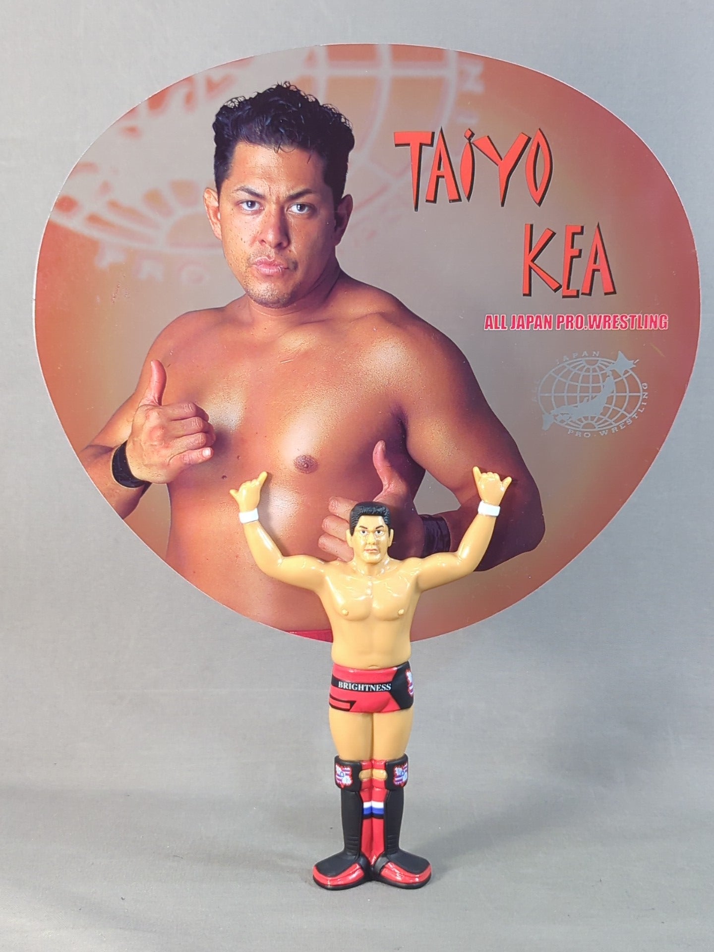持つ部分が太陽ケアの人形。うちわ部分はプラスチック。