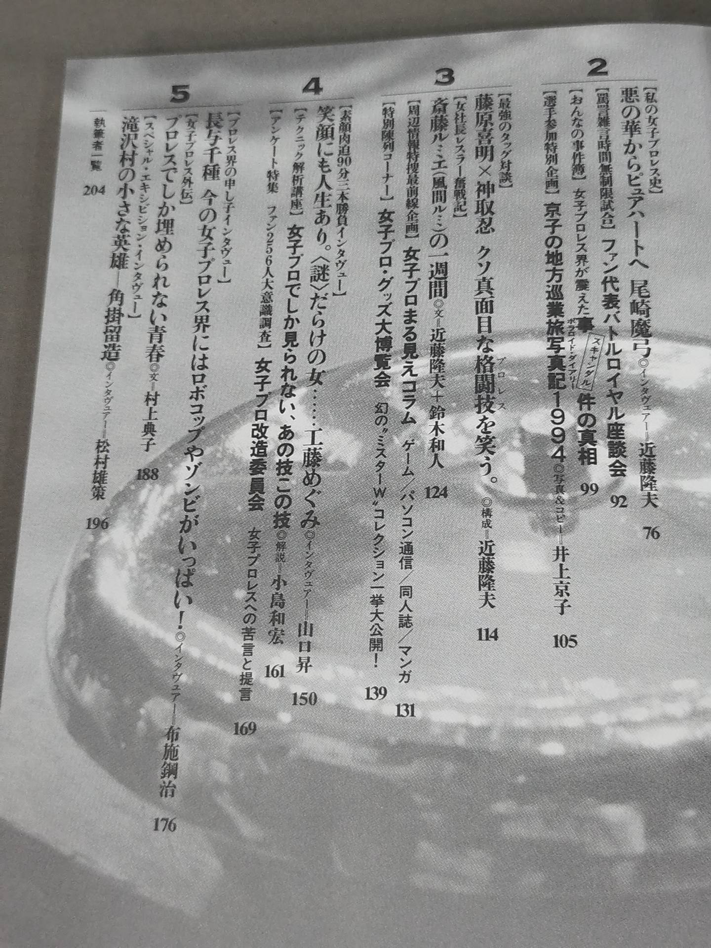 ムック(スパイス・ブックス) 二見書房 / 女子プロレスラーの得意技、コスチューム、私生活、女子プロレスの歴史、噂などを、尾崎魔弓、工藤めぐみ等人気レスラーのインタビューも交えつつ、たっぷり満載した、女子プロマニア必見の本。