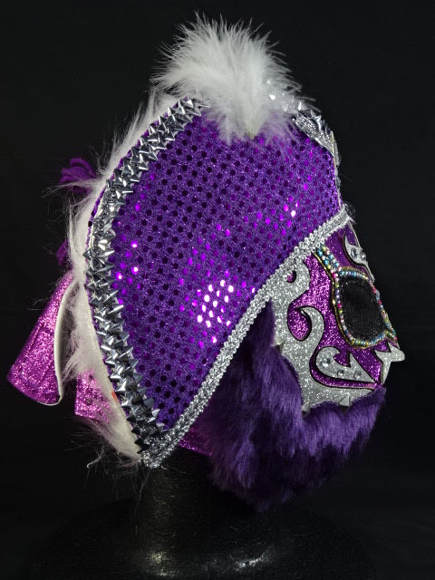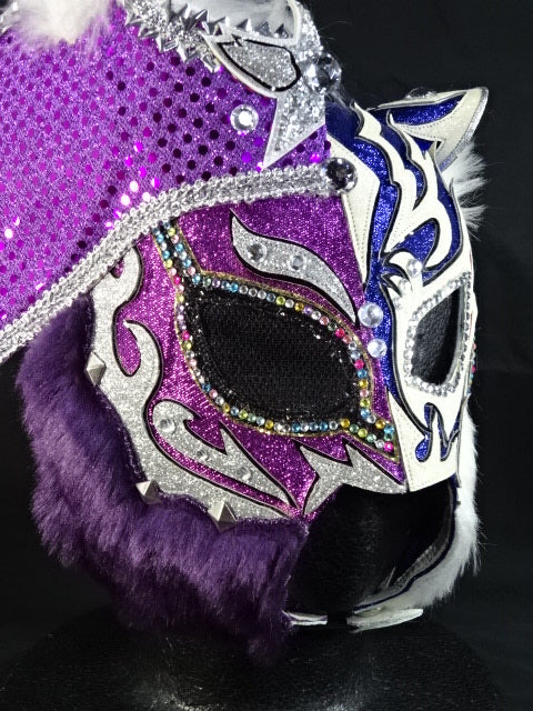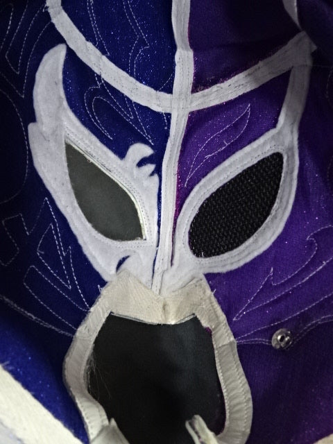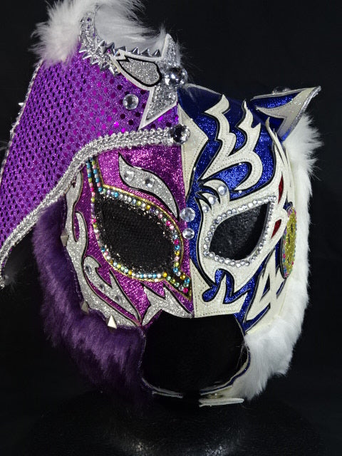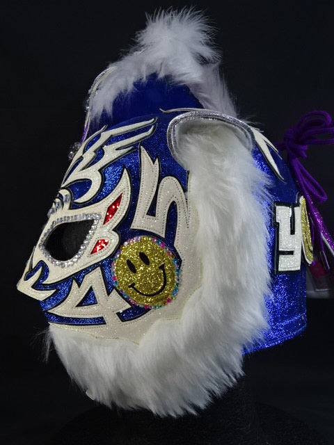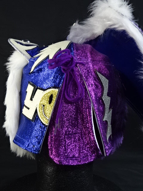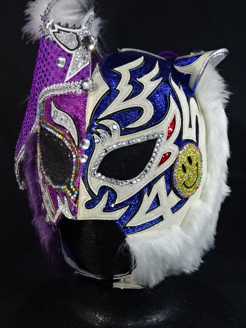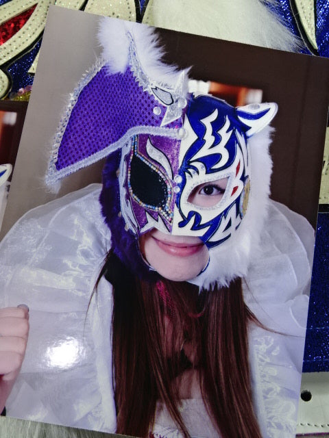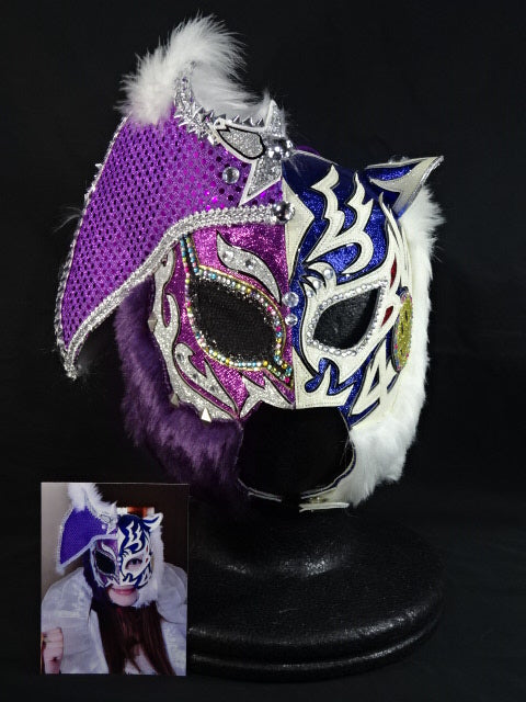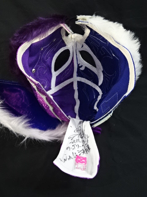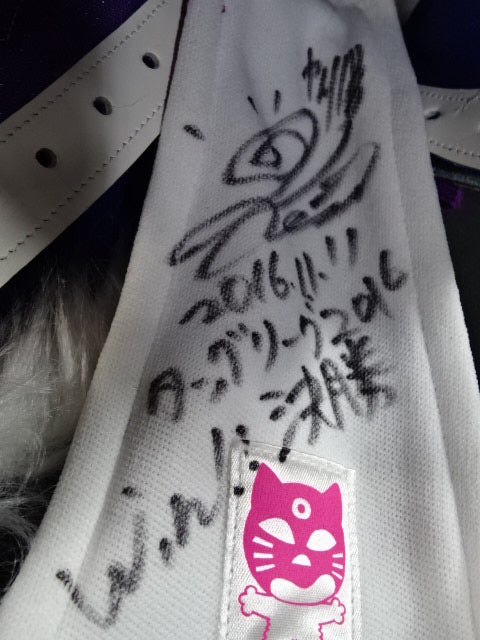 本人使用サイン入り(2016.11.11 タッグリーグ2016決勝!!Win!!) 紫&青ハーフラメ 黒フチ&銀ラメフチ&パール特殊革フチ&金ラメフチ ラインストーン装飾あり