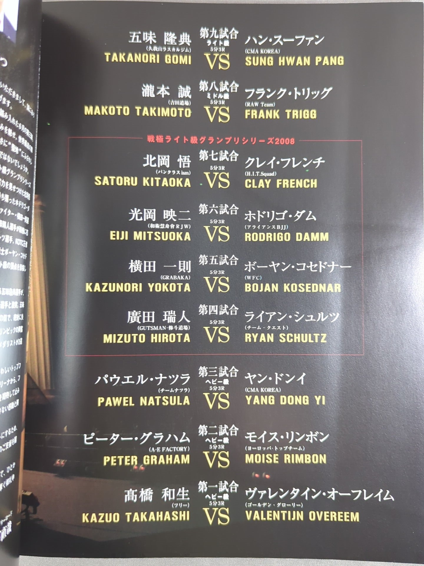 会場:さいたまスーパーアリーナ / 印刷対戦カード&別紙対戦カードあり:五味隆典vsハン・スーファン / 滝本誠vsフランク・トリッグ / 北岡悟vsクレイ・フレンチ
