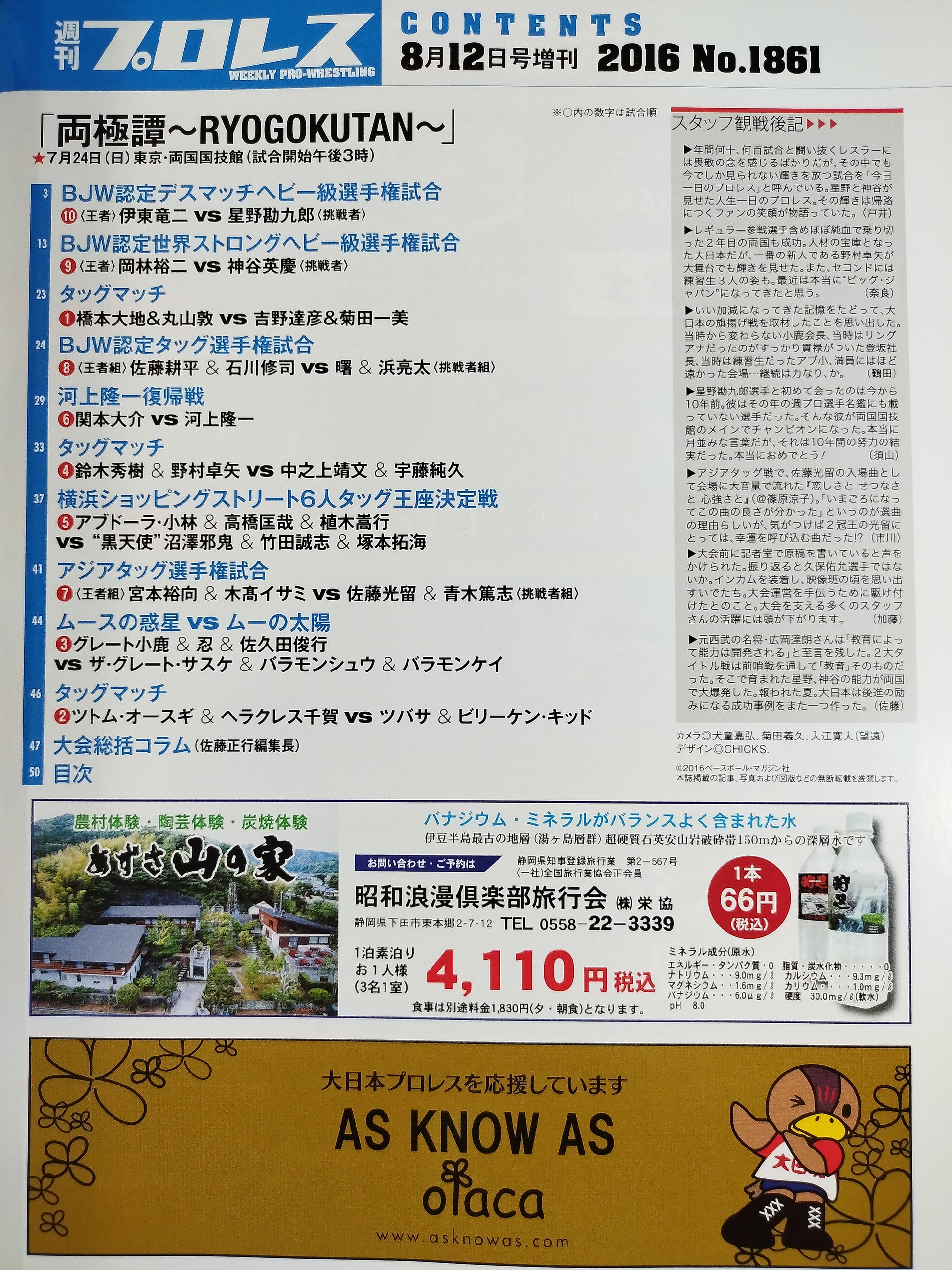 【星野勘九郎、神谷英慶、河上隆一 直筆サイン入り】大日本・両国 報われた夏 表紙:星野勘九郎&神谷英慶