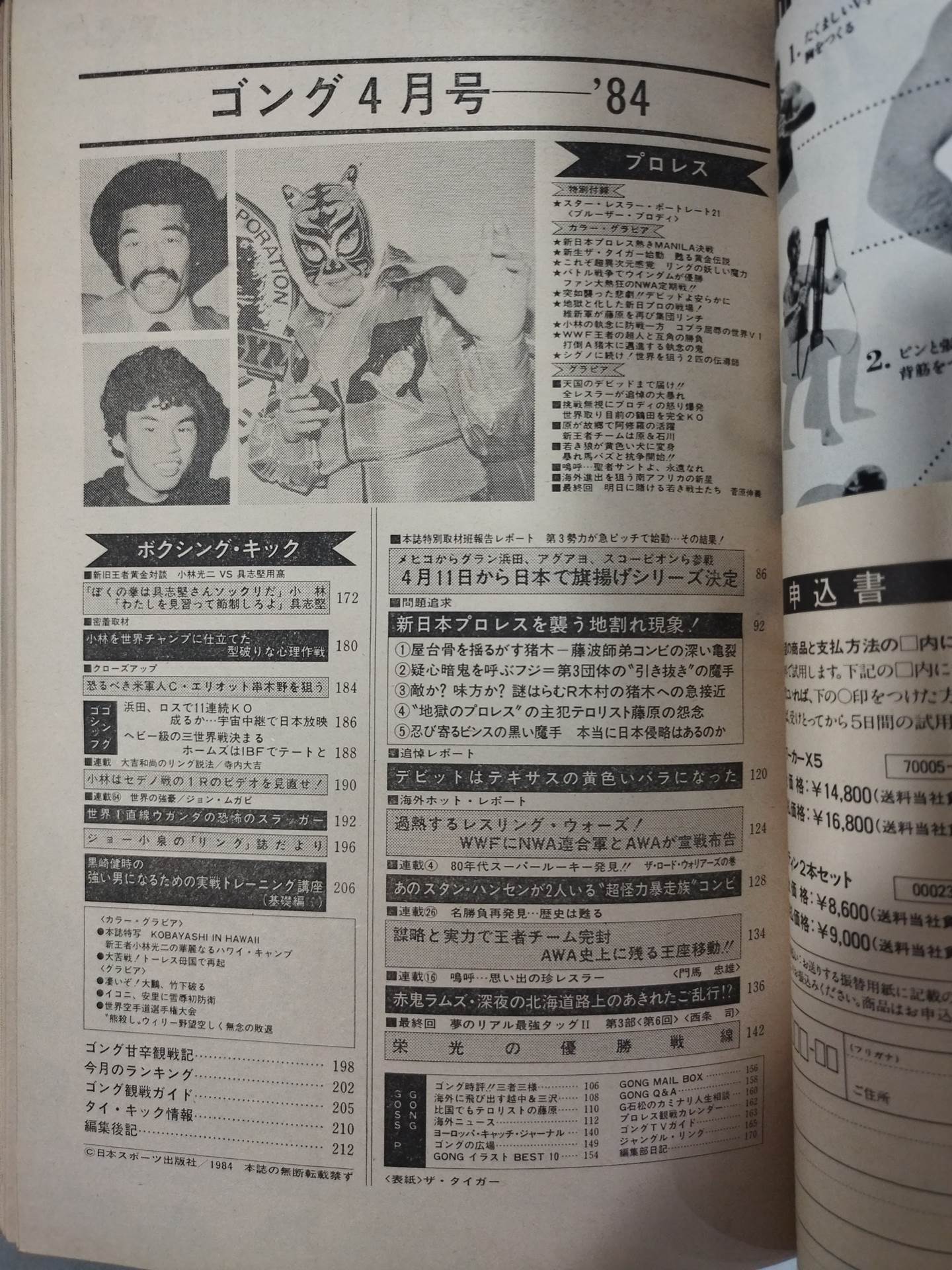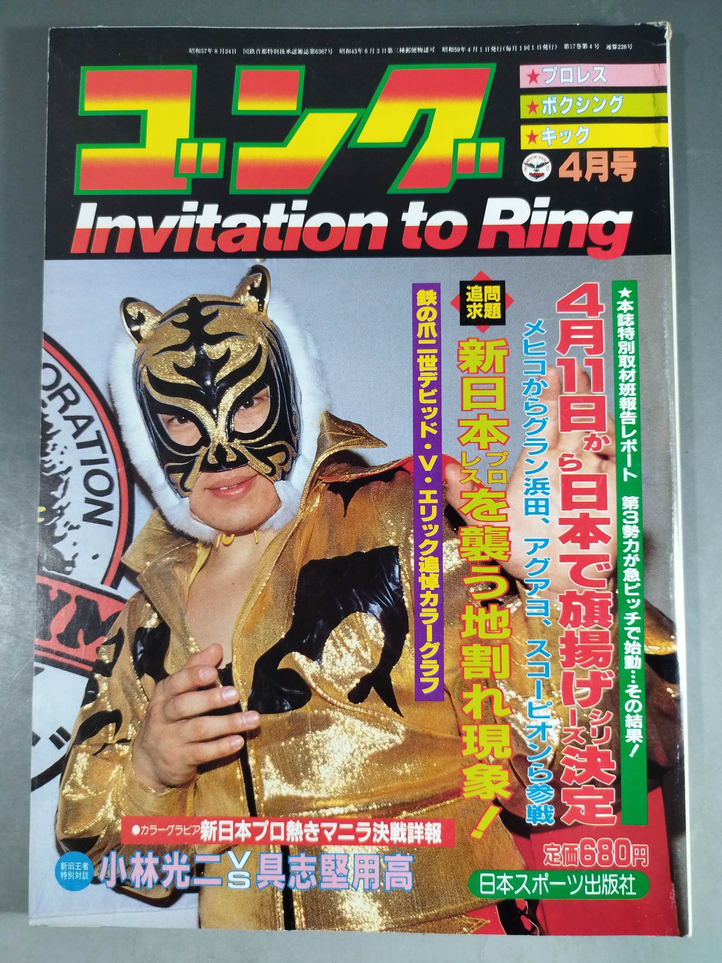 本誌特別取材班報告レポート 第三世界が急ピッチで始動…その結果!4月11日から日本で旗揚げシリーズ決定 ・メヒコからグラン浜田、アグアヨ、スコーピオンら参戦 ・問題追及新日本プロレスを襲う地割れ現象! ・鉄の爪二世デビット・V・エリック追悼カラーグラフ ・カラーグラビア新日本プロ熱きマニラ決戦詳報 ・新旧王者特別対談小林光二vs具志堅用高 / 【付録】〇特別付録(スター・レスラー・ポートレイト21キング・コング・ブルーザー・ブロディ) 表紙:タイガーマスク