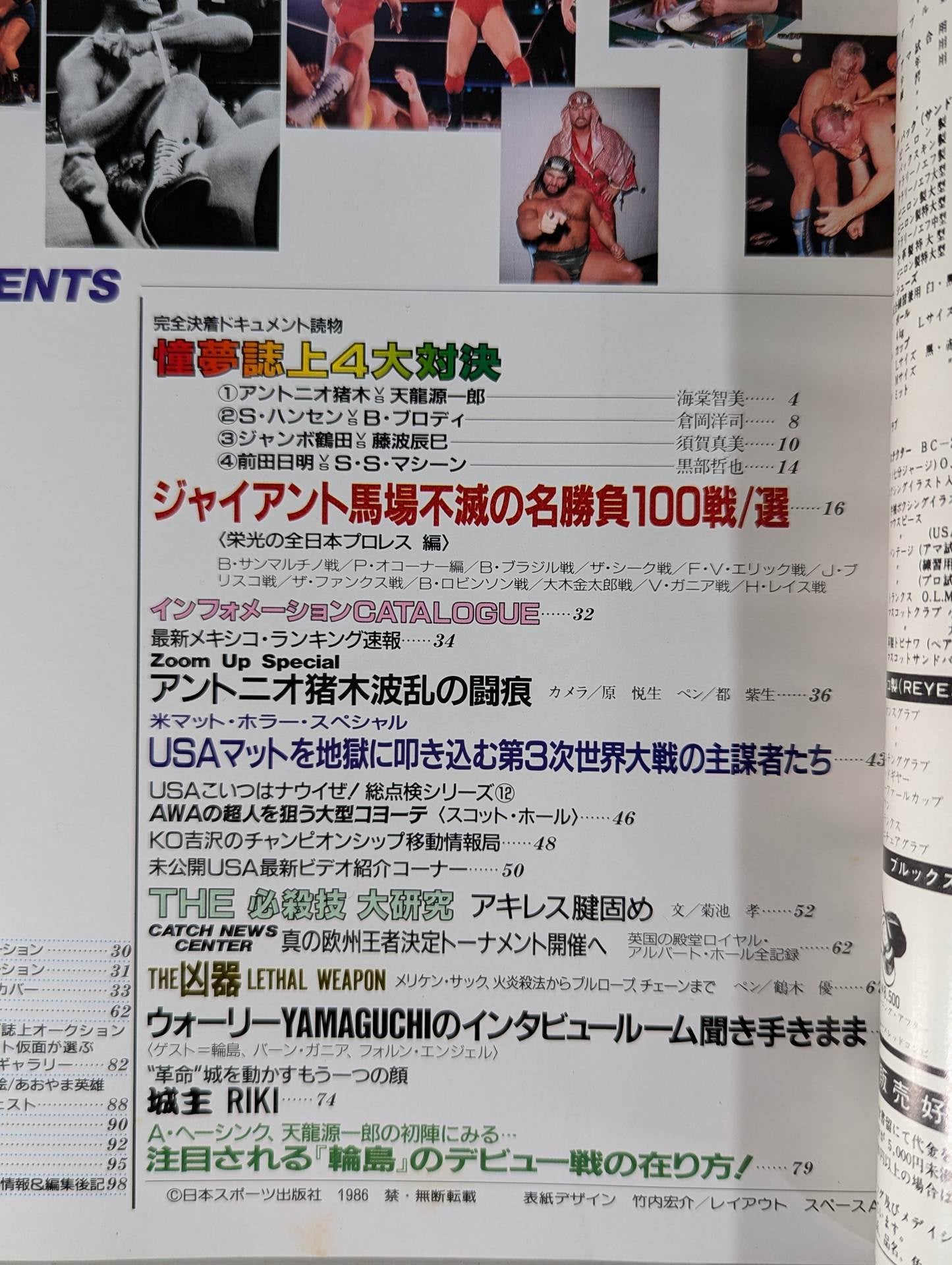 あの往年の名企画「夢の対決」が新構成で復活①猪木vs天龍②ハンセンvsブロディ③鶴田vs藤波④前田vsマシーン ジャイアント馬場不滅の名勝負100戦選 / 表紙:アントニオ猪木vs天龍源一郎、ジャイアント馬場