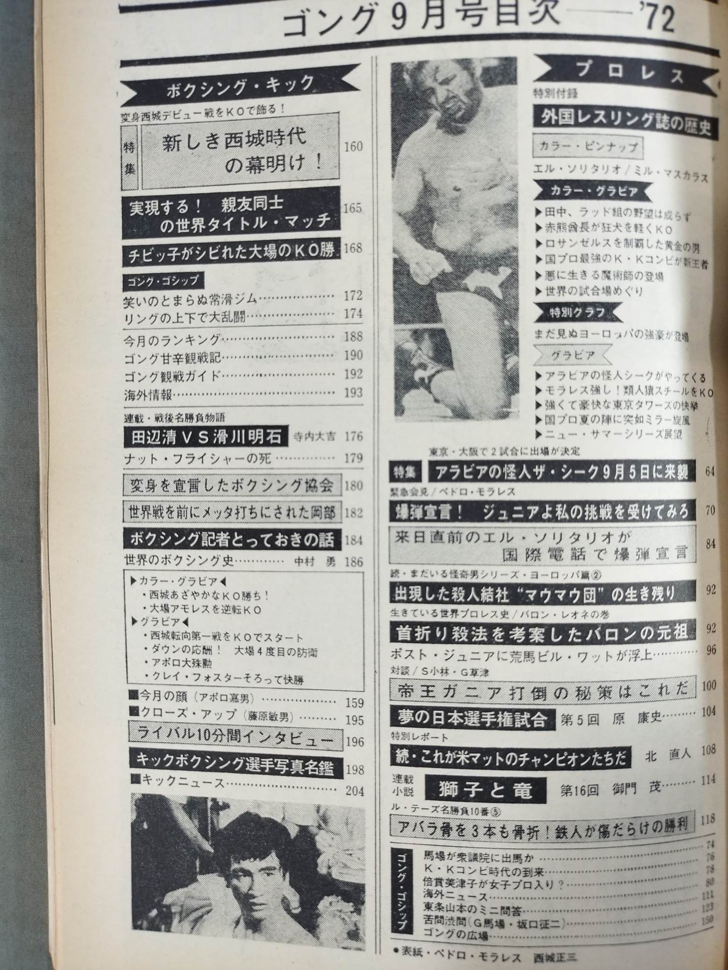 アラビアの怪人シークが来襲 P・モラレスに緊急会見 西城キック転向第1戦詳報 / 【付録】○ピンナップ(新マスカラス覆面シリーズ2 / エル・ソリタリオピンナップ) 〇特別付録(外国レスリング誌の歴史) 表紙:ペドロ・モラレス、西城正三