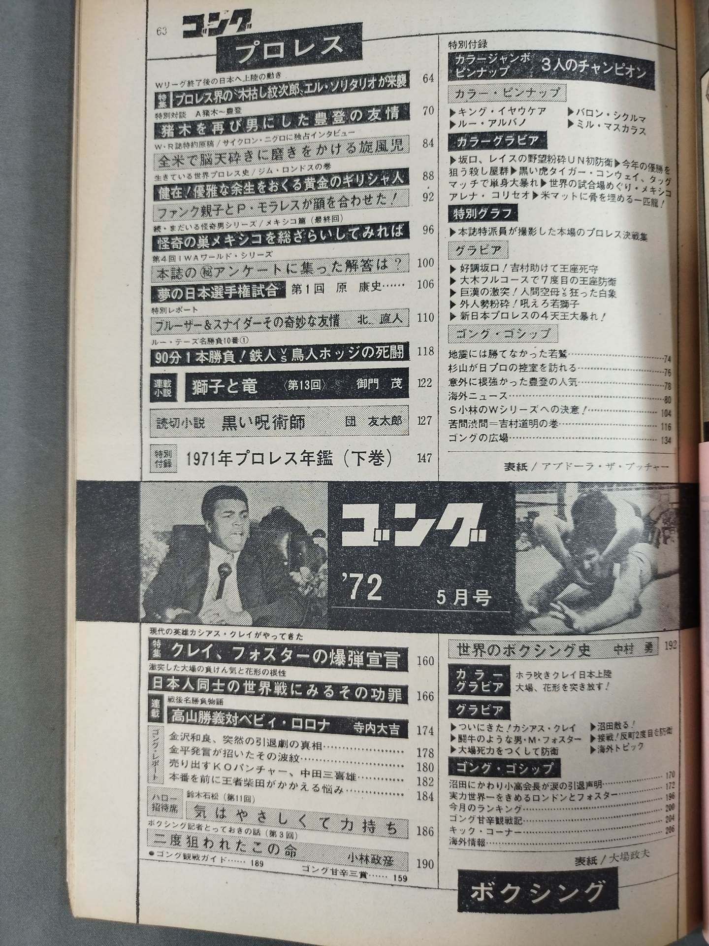 生きている世界プロレス史 ジム・ロンドス 新連載 夢の日本選手権試合 カシアス・クレイの爆弾宣言! / 【付録】◯ピンナップ(ミル・マスカラス / バロン・シクルマ&ルー・アルバノ&キング・イヤウケア) ◯特別付録(1971年プロレス年鑑 下巻) ×カラー・ジャンボ・ピンナップ / 表紙:アブドーラ・ザ・ブッチャー、大場政夫