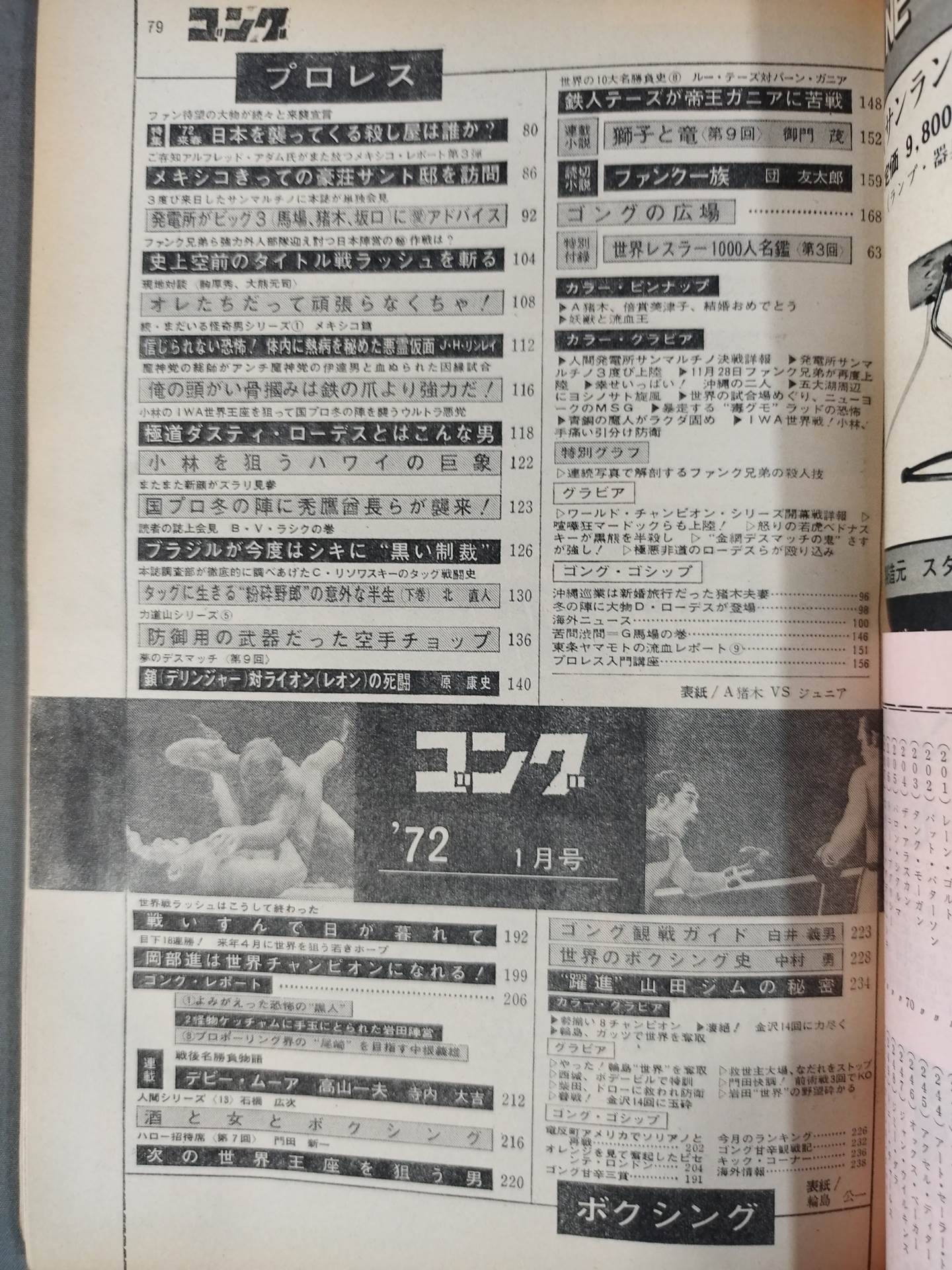 新春に日本を襲う殺し屋は誰か メキシコレポート エル・サントの家庭訪問記! 世界戦ラッシュは終わったが... / 【付録】◯ピンナップ(ダニー・リンチ、バロン・フォン・ラシク / アントニオ猪木、倍賞美津子) ◯特別付録(第3回世界レスラー1000人名鑑) / 表紙:アントニオ猪木vsドリー・ファンク・ジュニア、輪島功一