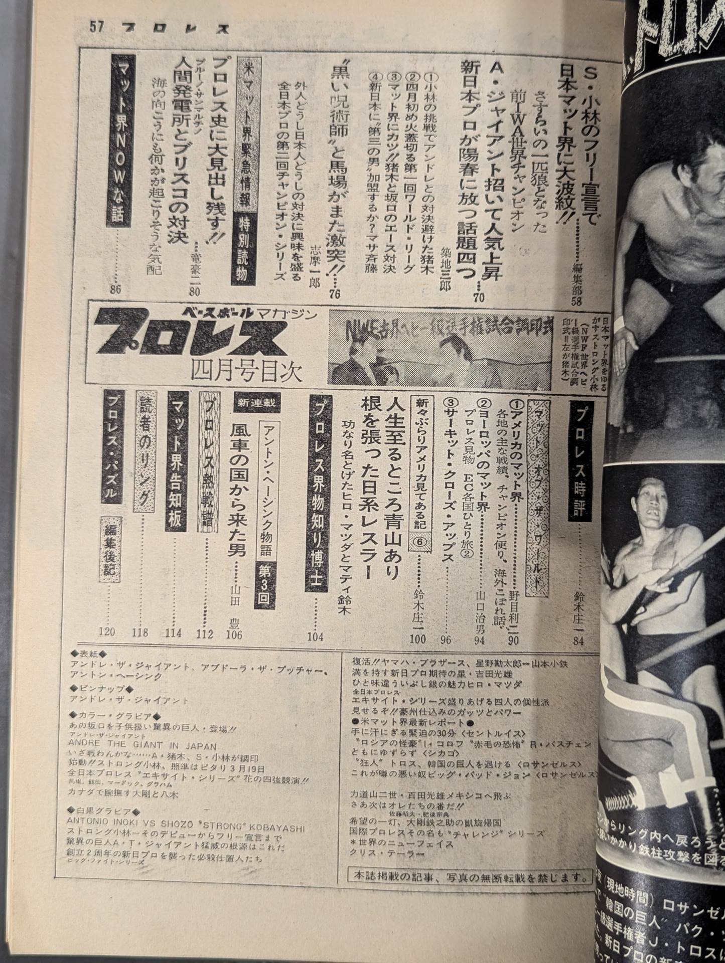 小林の”フリー宣言”が日本マット界に大波紋 プロレス史に大見出し残す人間発電所とブリスコの対決 / 【付録】◯ピンナップ(アンドレ・ザ・ジャイアント) / 表紙:アンドレ・ザ・ジャイアント、アブドーラ・ザ・ブッチャー、アントン・ヘーシンク