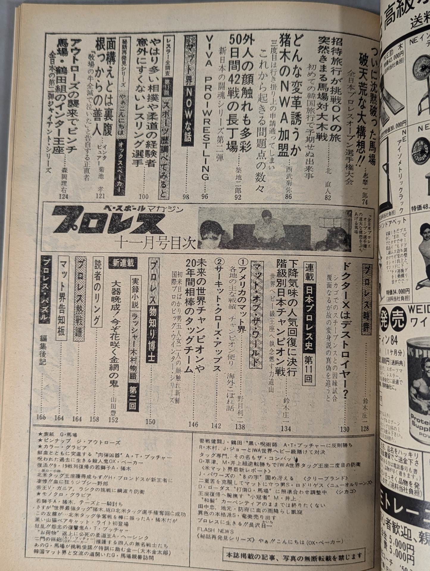 馬場対猪木戦ついに実現!? 沈黙を破ったG・馬場「全日本オープン選手権」情報第一弾 親善訪問の韓国で大木の挑戦を快諾した馬場とその一部始終 / 【付録】◯ピンナップ(ダスティ・ローデス&ディック・マードック) / 表紙:ジャイアント馬場